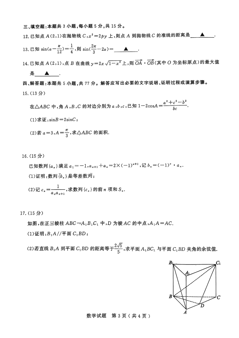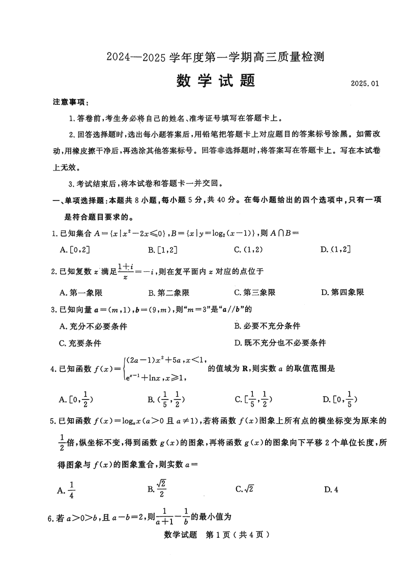 济宁2024-2025学年高三上学期1月期末数学试题及答案