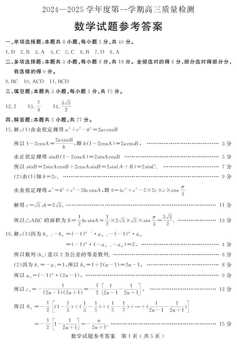 济宁2024-2025学年高三上学期1月期末数学考试已于近日开考,为方便考生考后及时查看考试情况,查漏补缺、弥补不足,本文整理了试题答案解析相关信息!