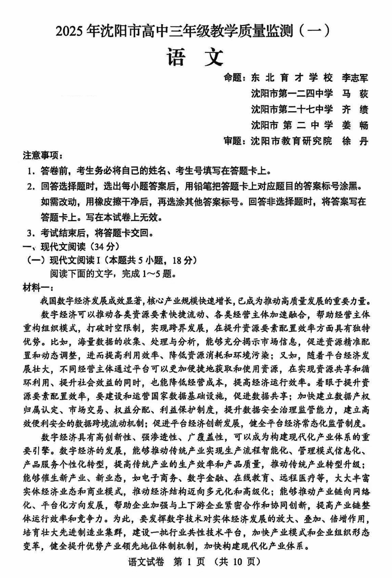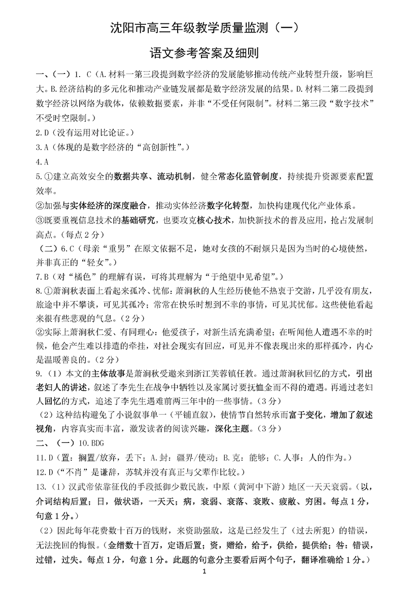 沈阳2025届高三上学期教学质量监测(一)语文考试已于近日开考,为方便考生考后及时查看考试情况,查漏补缺、弥补不足,本文整理了试题答案解析相关信息!