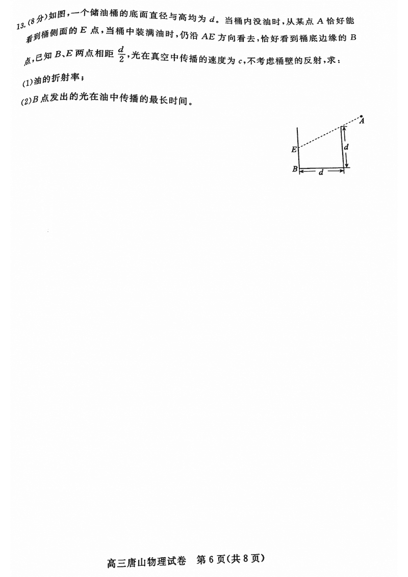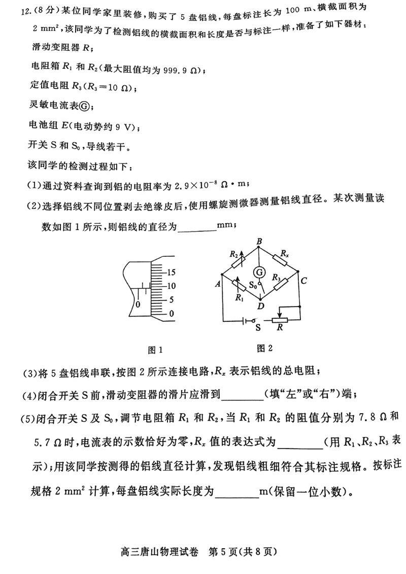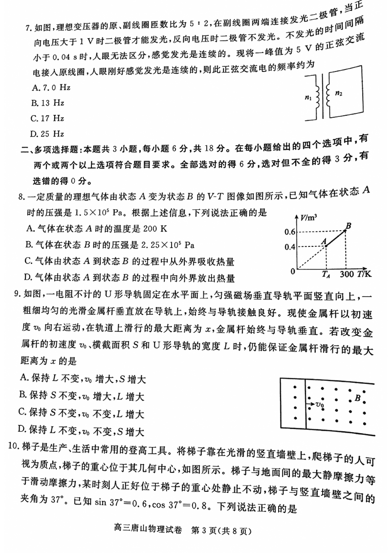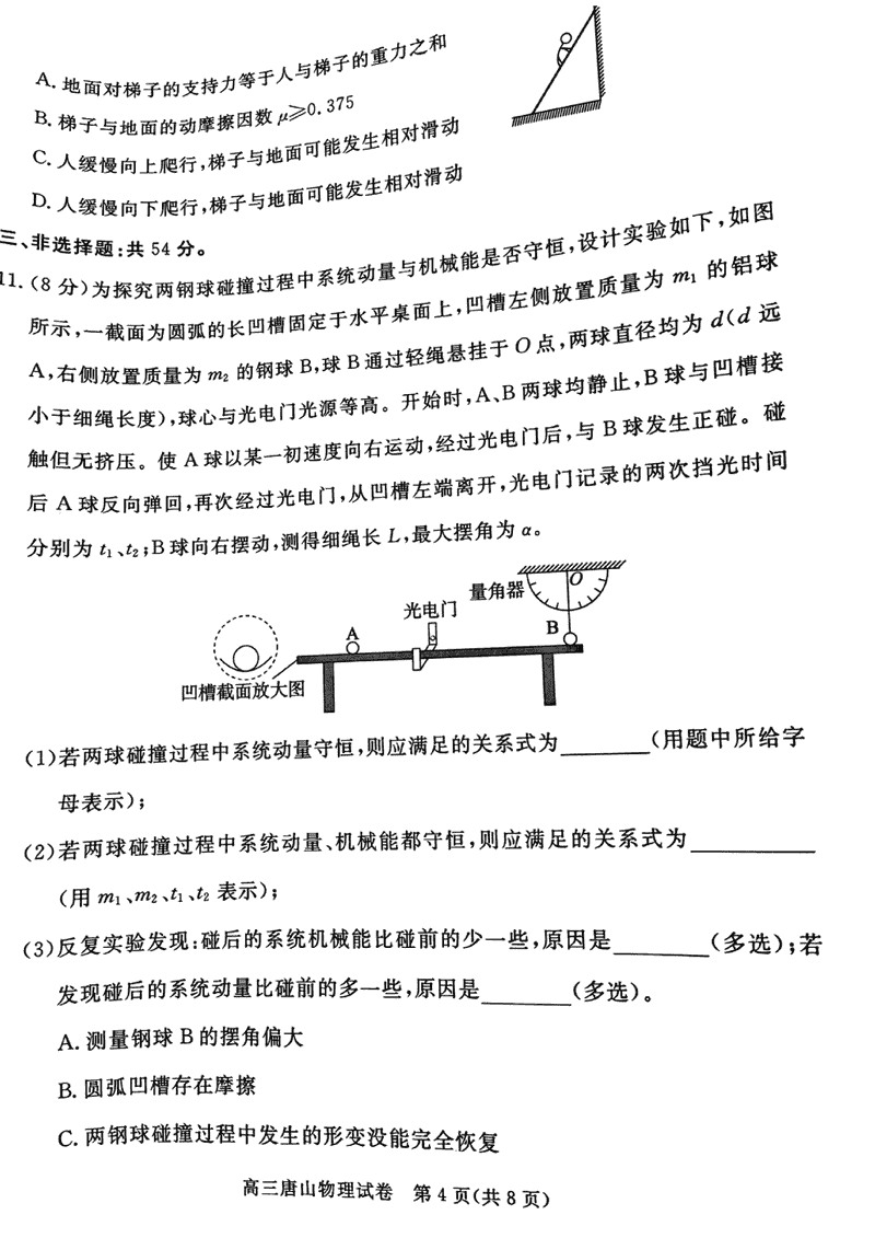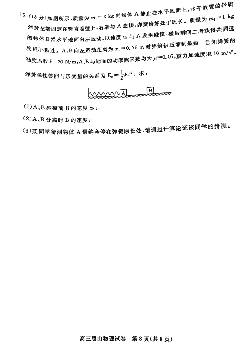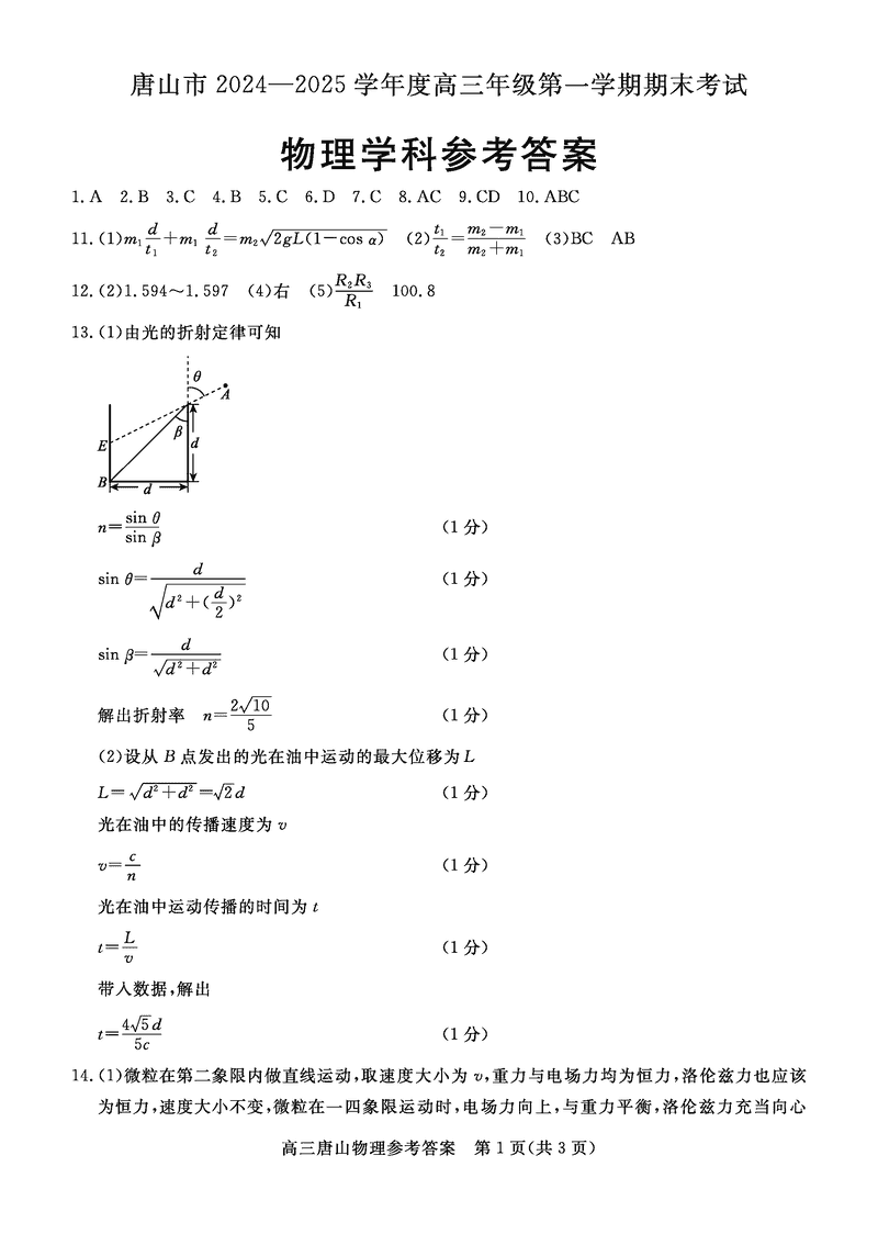 河北唐山2024-2025学年高三上学期1月期末物理考试已于近日开考,为方便考生考后及时查看考试情况,查漏补缺、弥补不足,本文整理了试题答案解析相关信息!