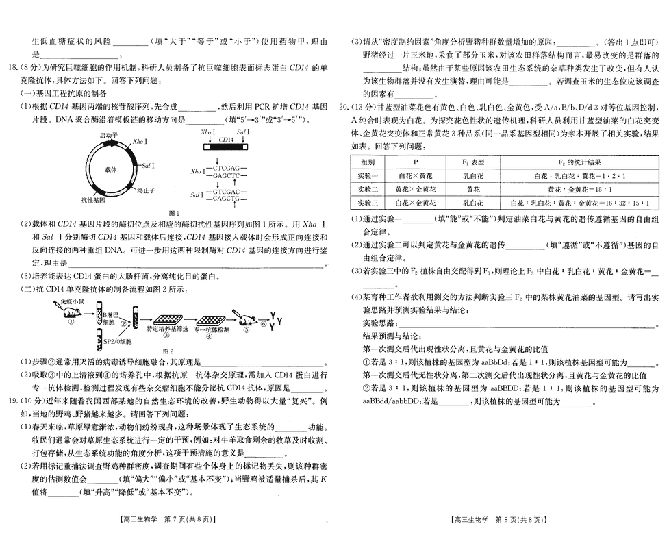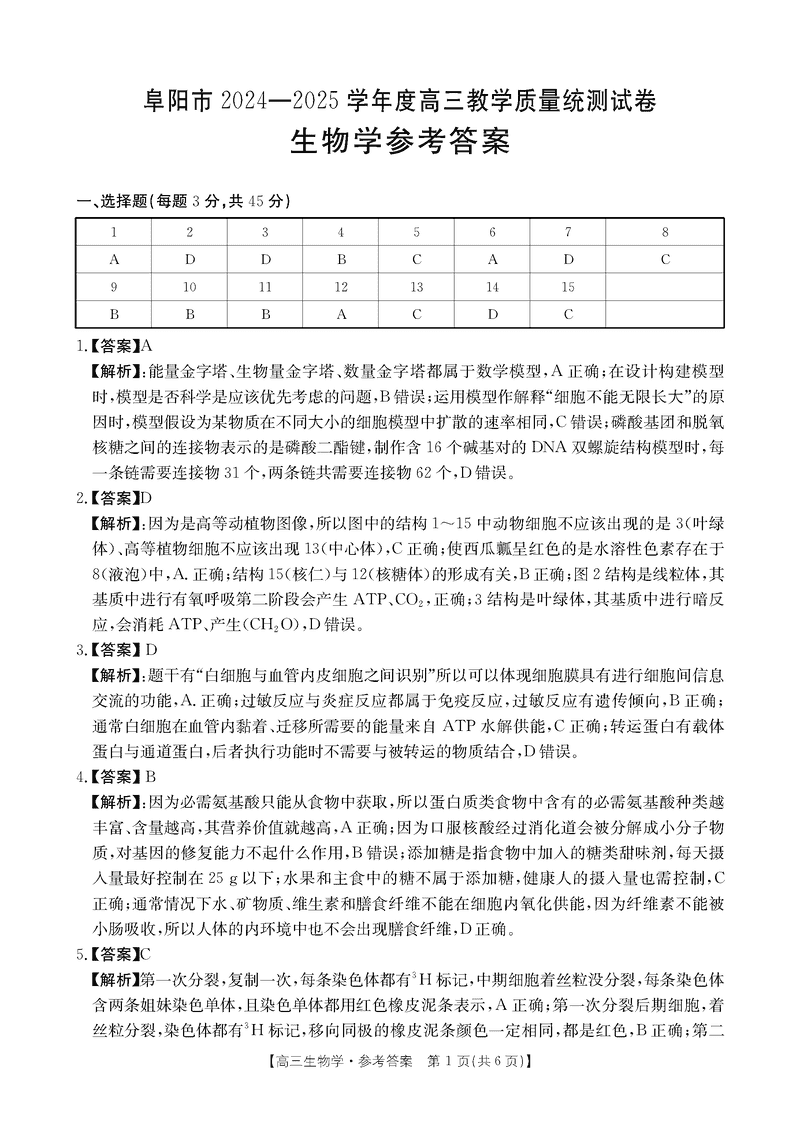安徽省阜阳市2025届高三上学期教学质量统测生物考试已于近日开考,为方便考生考后及时查看考试情况,查漏补缺、弥补不足,本文整理了试题答案解析相关信息!