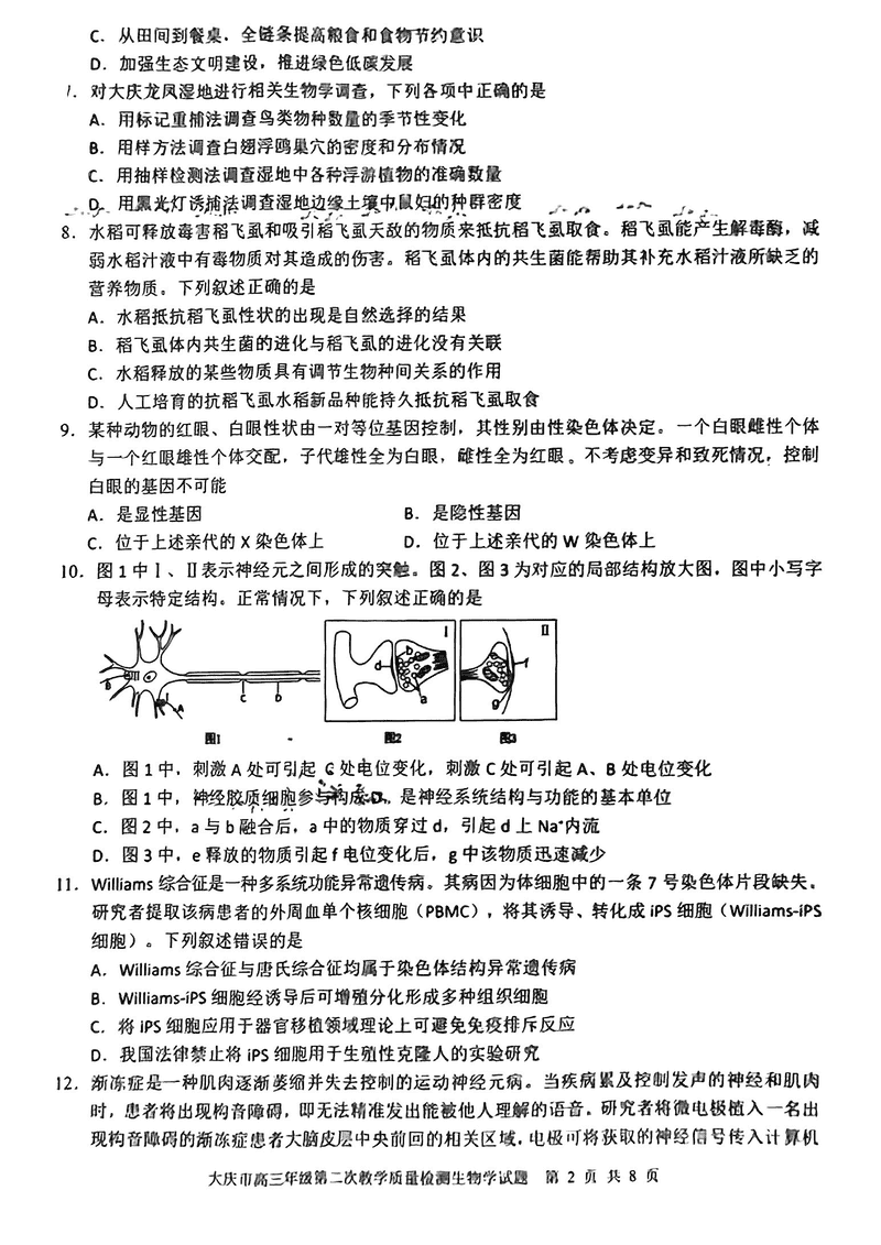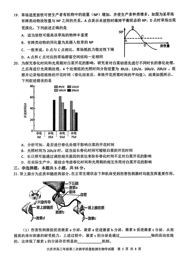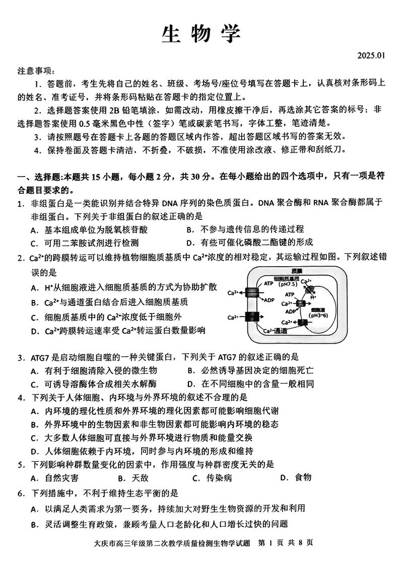 黑龙江大庆二模2025届高三年级第二次教学质检生物考试已于近日开考,为方便考生考后及时查看考试情况,查漏补缺、弥补不足,本文整理了试题答案解析相关信息!