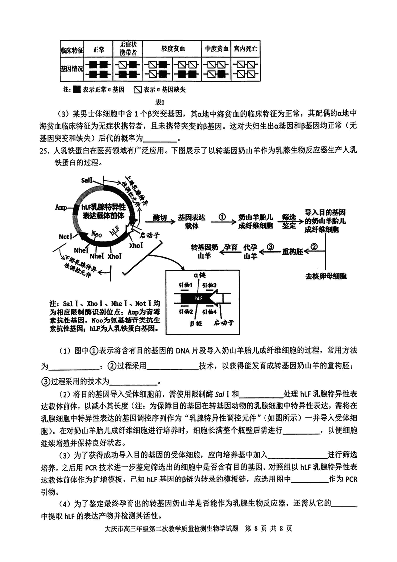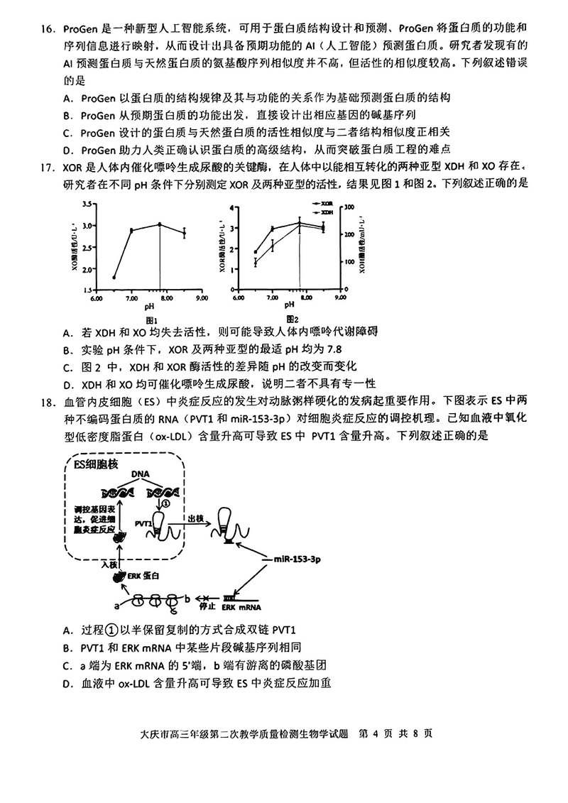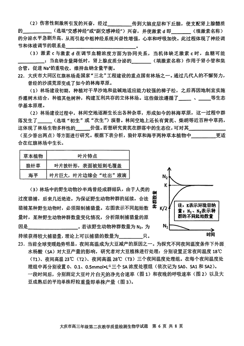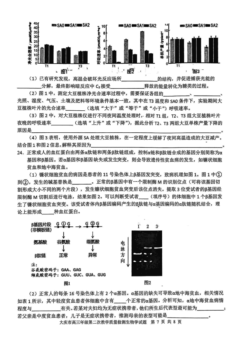 大庆二模2025届高三年级第二次教学质检生物试题及答案