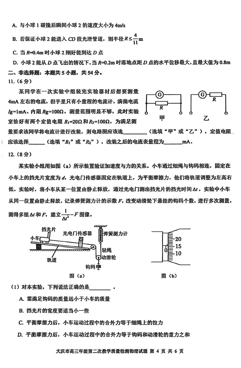 大庆二模2025届高三年级第二次教学质检物理试题及答案