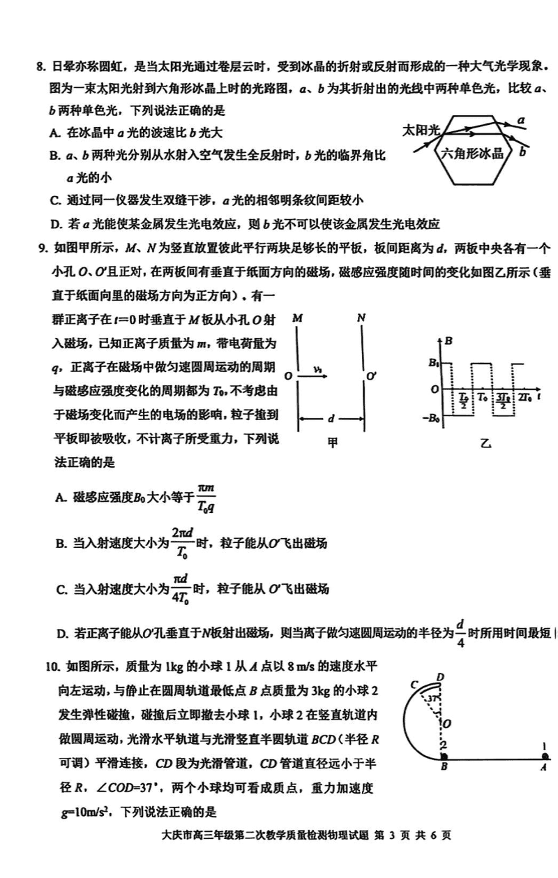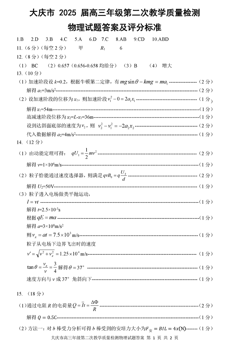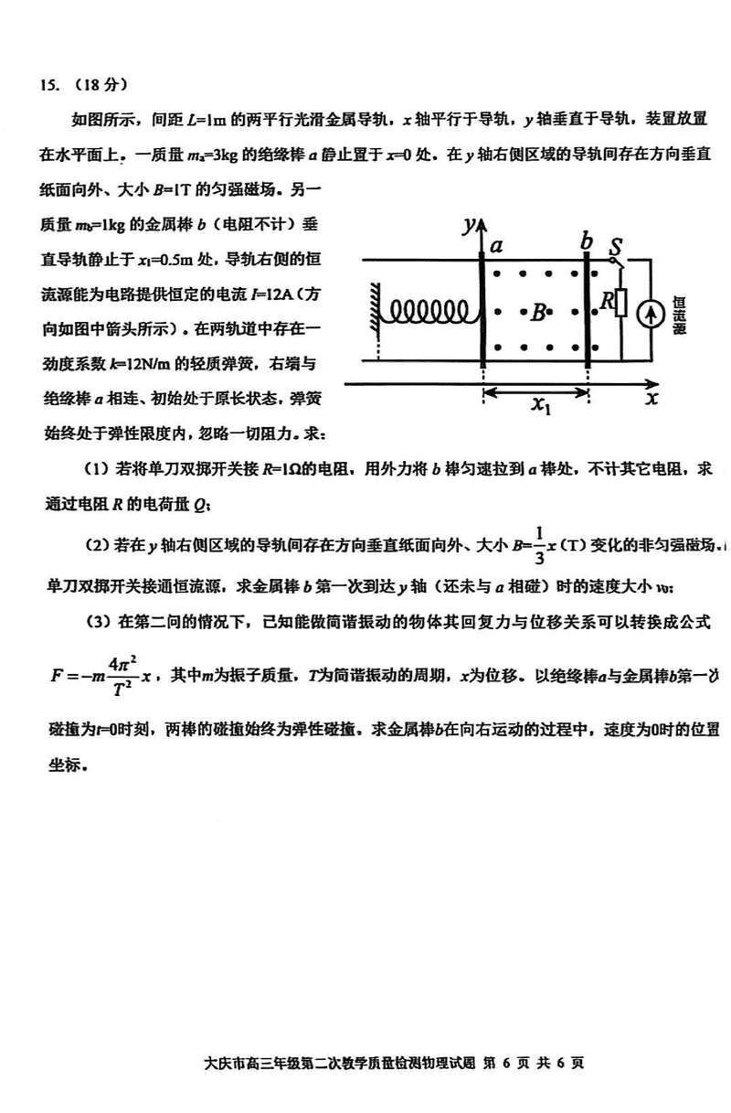 黑龙江大庆二模2025届高三年级第二次教学质检物理考试已于近日开考,为方便考生考后及时查看考试情况,查漏补缺、弥补不足,本文整理了试题答案解析相关信息!