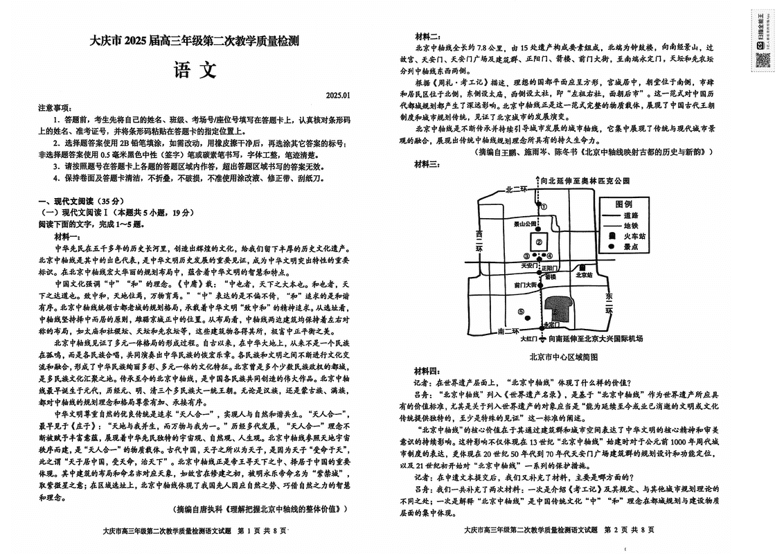 黑龙江大庆二模2025届高三年级第二次教学质检语文考试已于近日开考,为方便考生考后及时查看考试情况,查漏补缺、弥补不足,本文整理了试题答案解析相关信息!