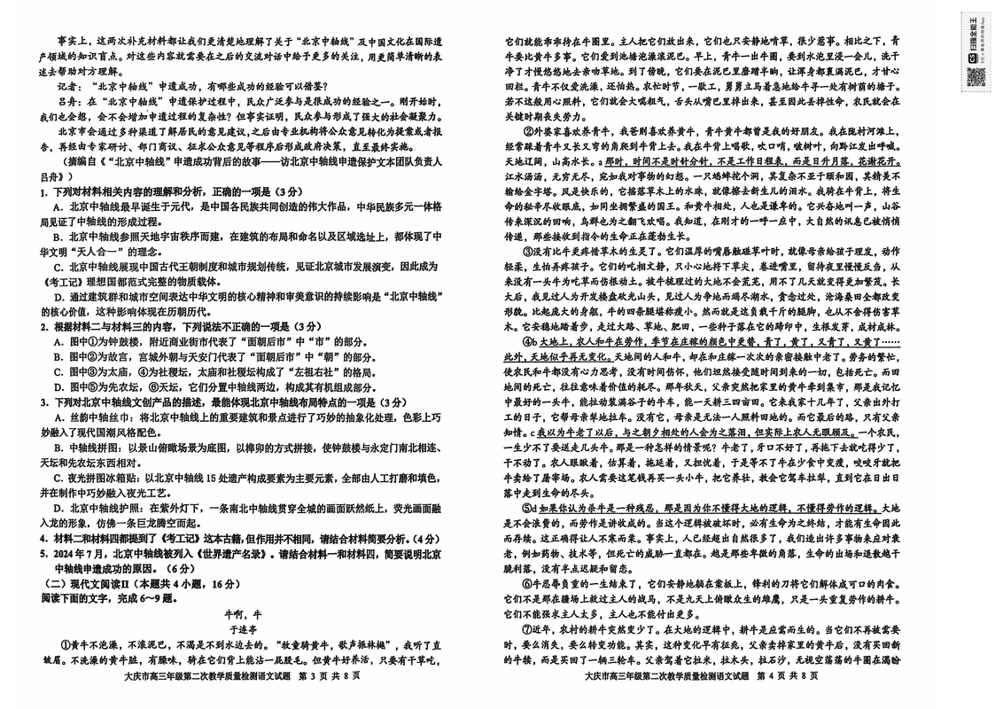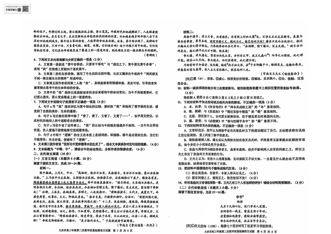 大庆二模2025届高三年级第二次教学质检语文试题及答案