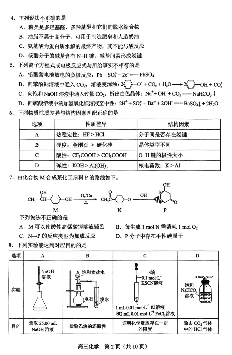 化学试题及答案解析