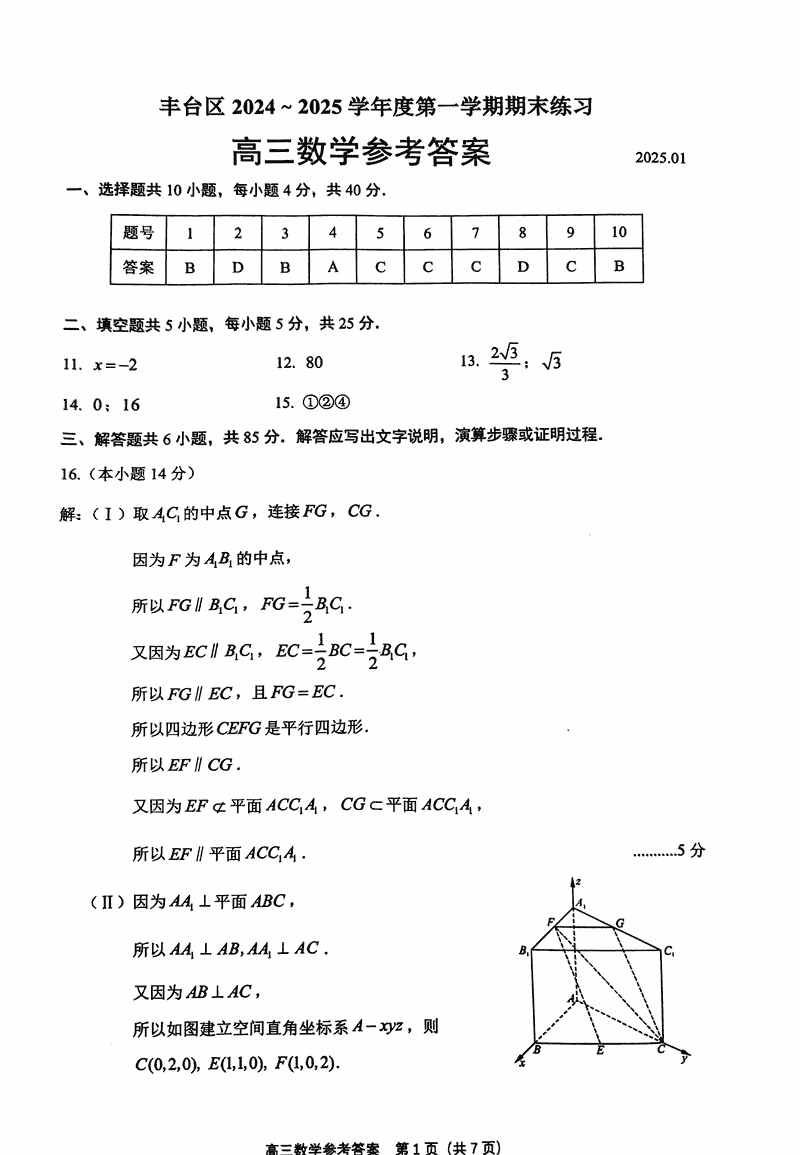 北京市丰台区2024-2025学年高三上学期期末数学考试已于近日开考,为方便考生考后及时查看考试情况,查漏补缺、弥补不足,本文整理了试题答案解析相关信息!