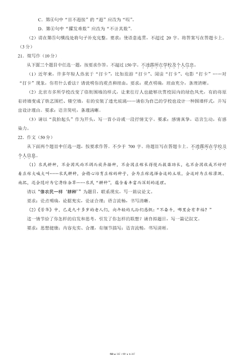 北京 语文试题