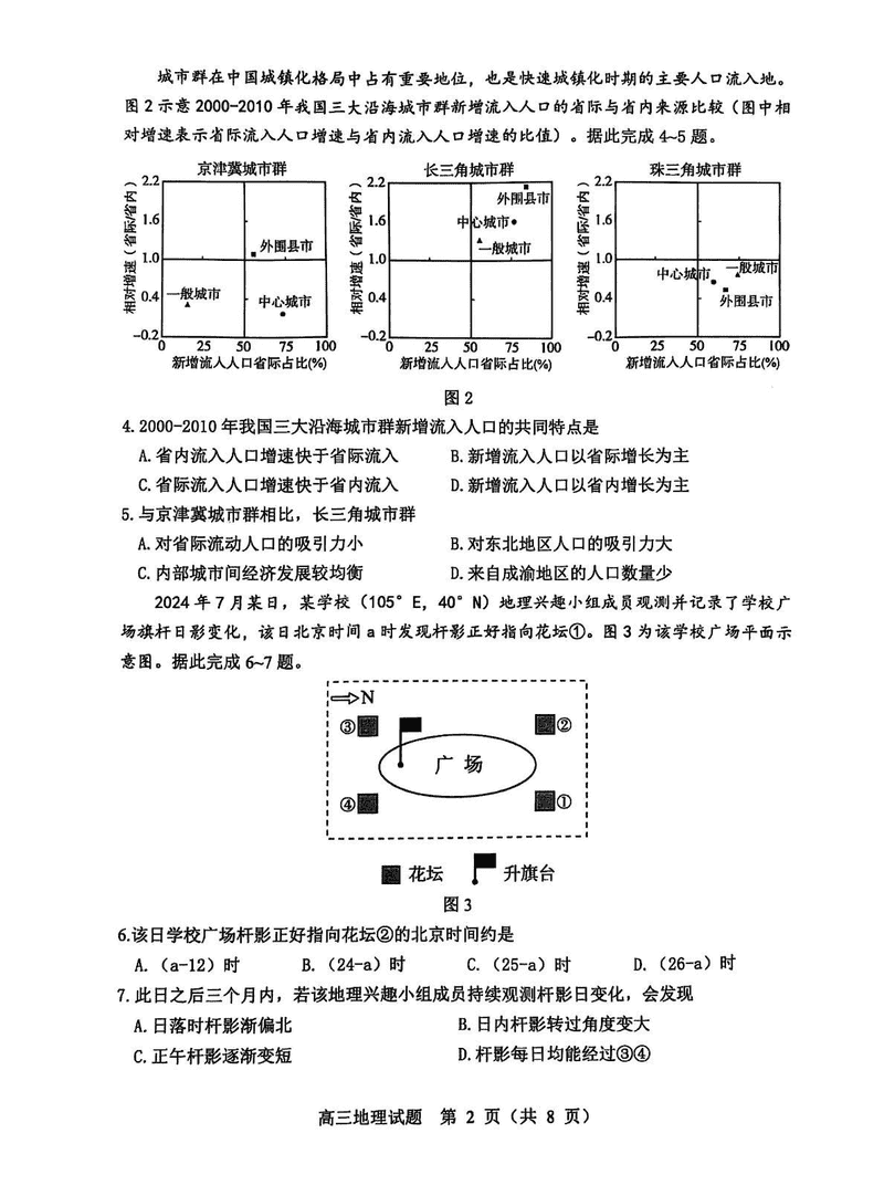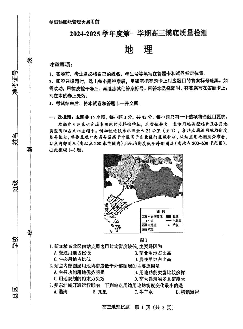 山东淄博2024-2025学年高三上期末地理试题及答案