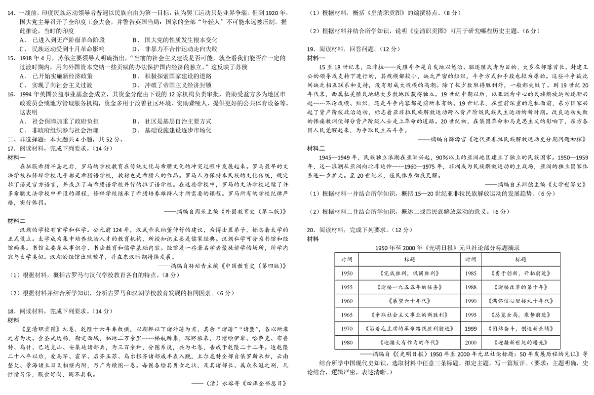 江西省十校协作体2025届高三第一次联考历史试题及答案
