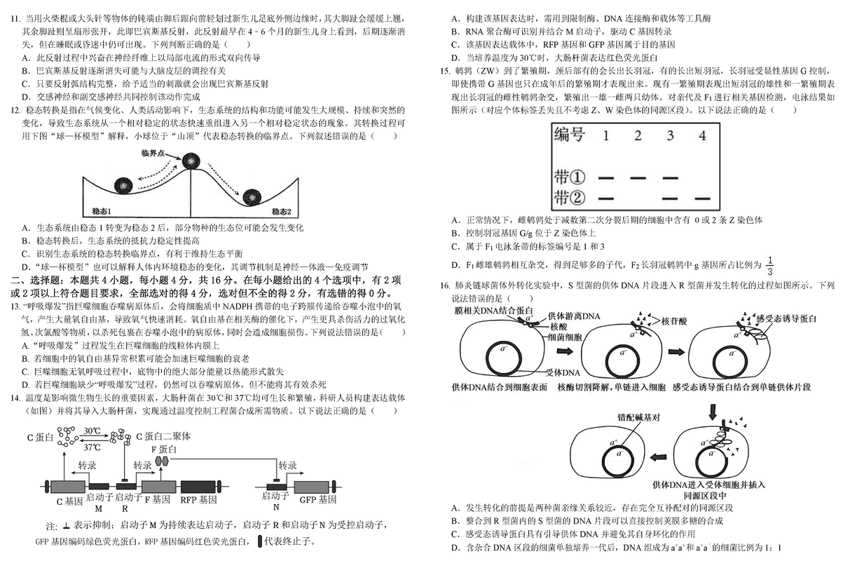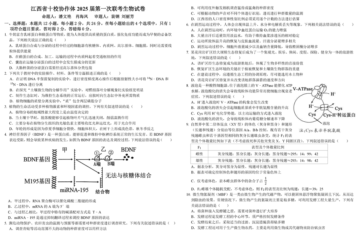 江西省十校协作体2025届高三第一次联考生物试题及答案