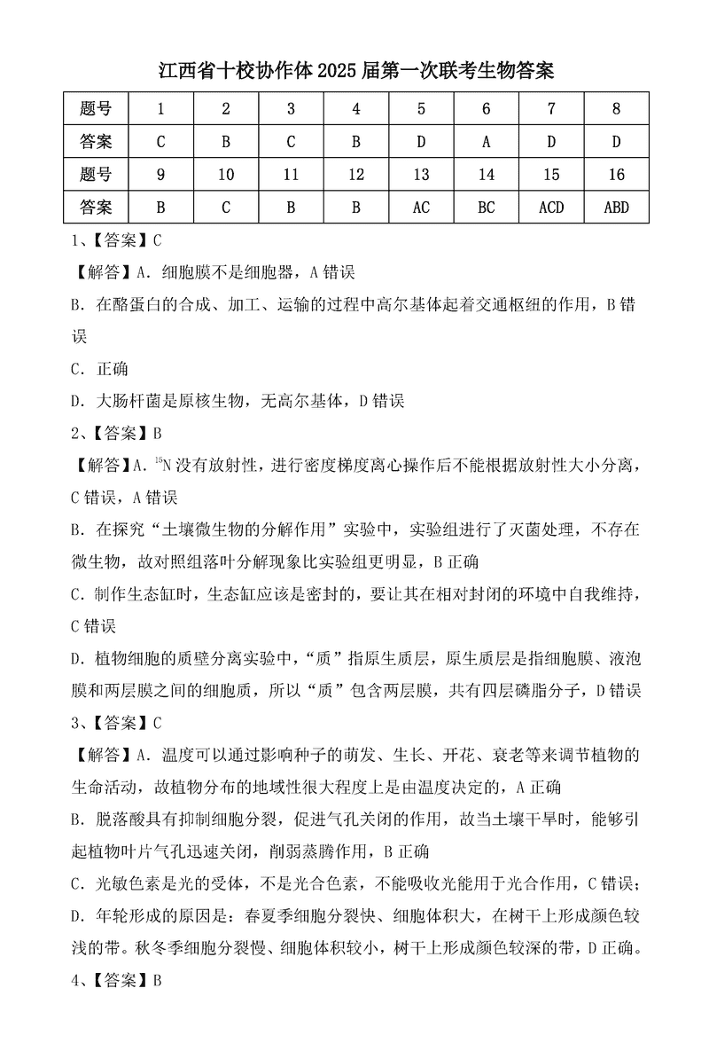 江西省十校协作体2025届高三第一次联考生物考试已于近日开考,为方便考生考后及时查看考试情况,查漏补缺、弥补不足,本文整理了试题答案解析相关信息!