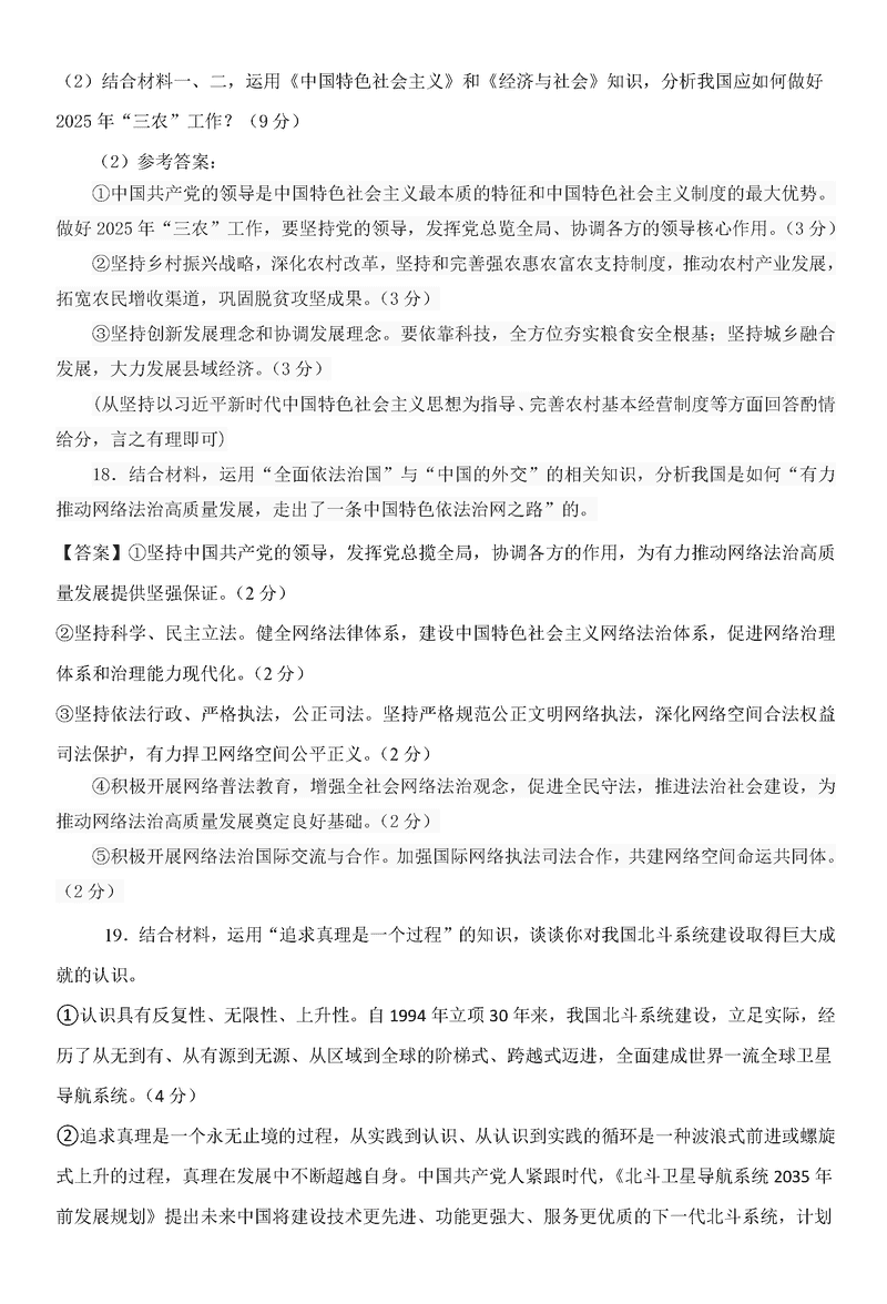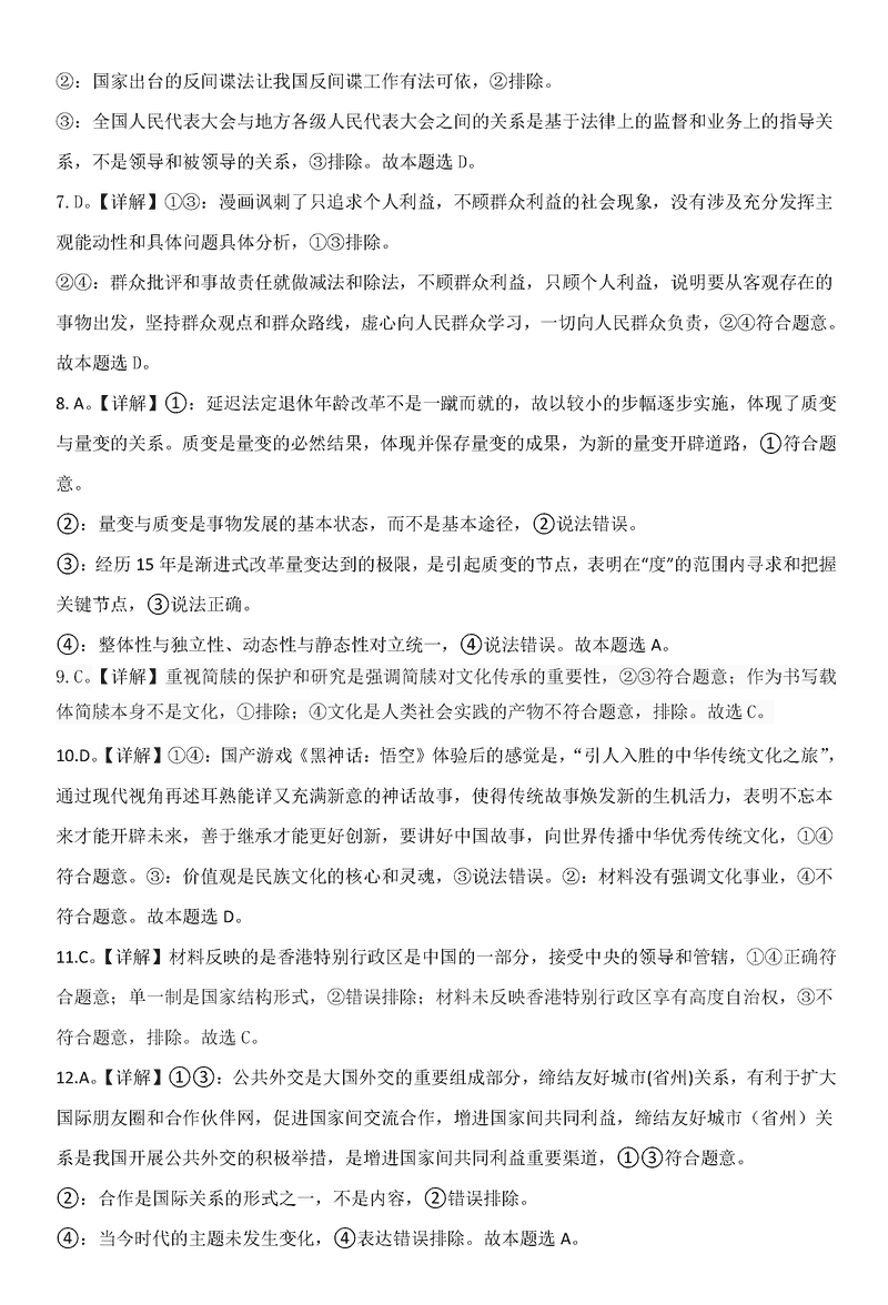 政治试题及答案解析