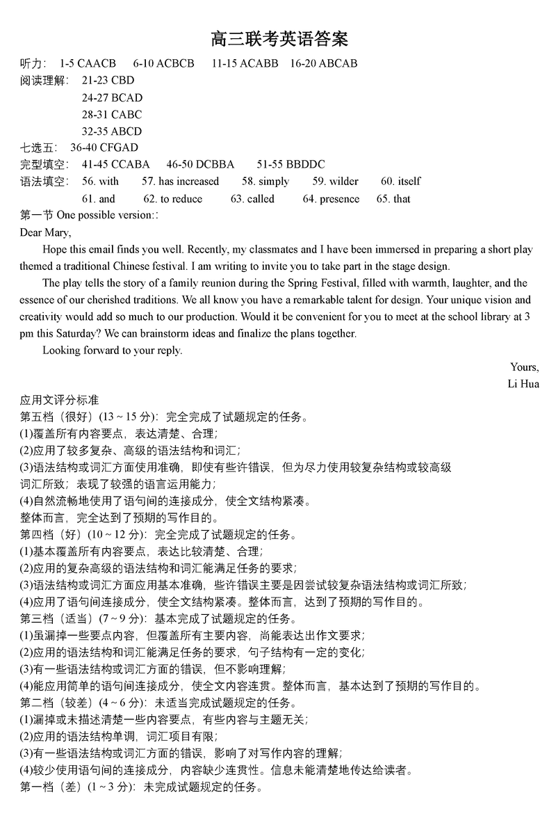 江西省十校协作体2025届高三第一次联考英语试题及答案