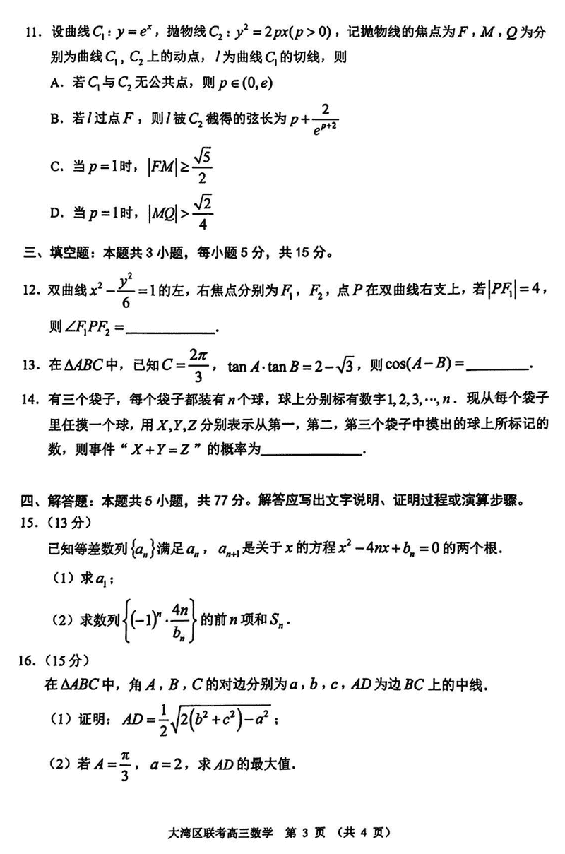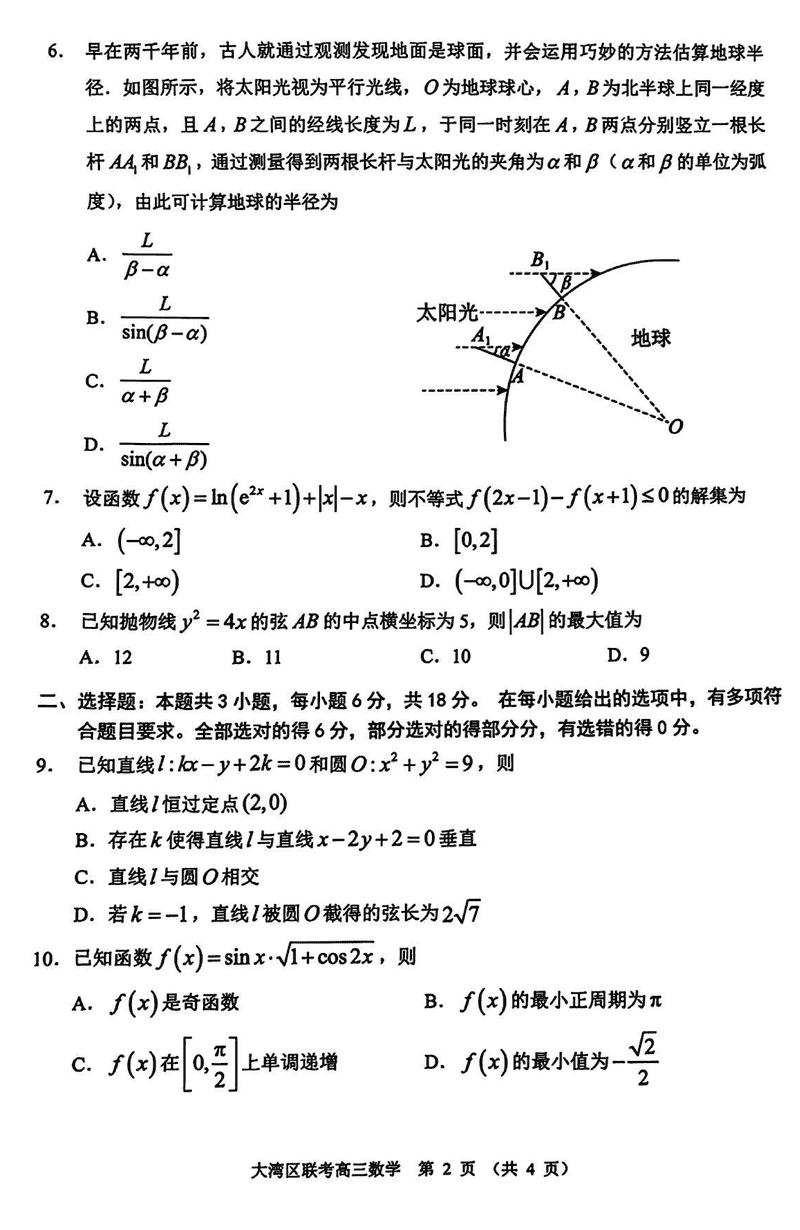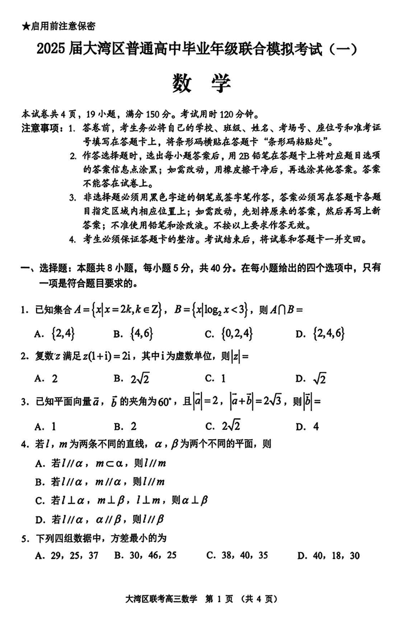 2025届广东省大湾区高三联合模拟考试(一)数学考试已于近日开考,为方便考生考后及时查看考试情况,查漏补缺、弥补不足,本文整理了试题答案解析相关信息!