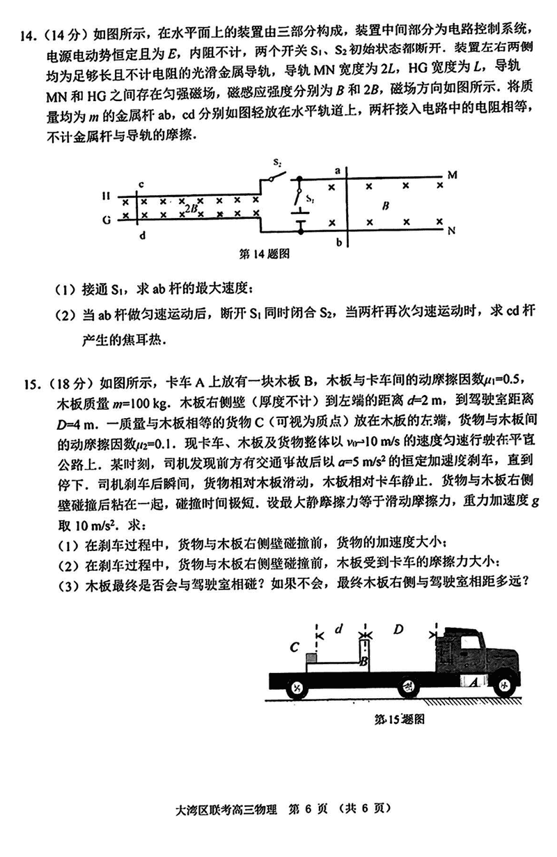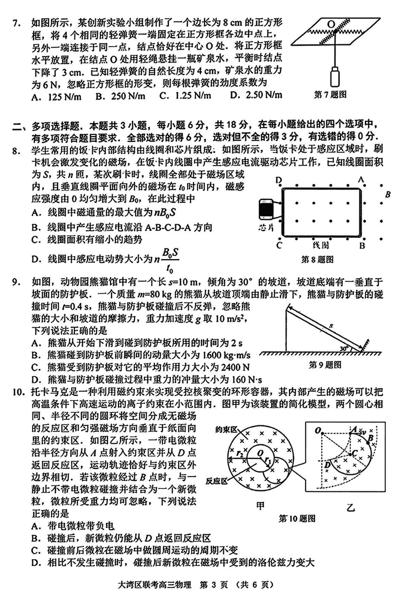 2025届广东省大湾区高三联合模拟考试(一)物理试题及答案