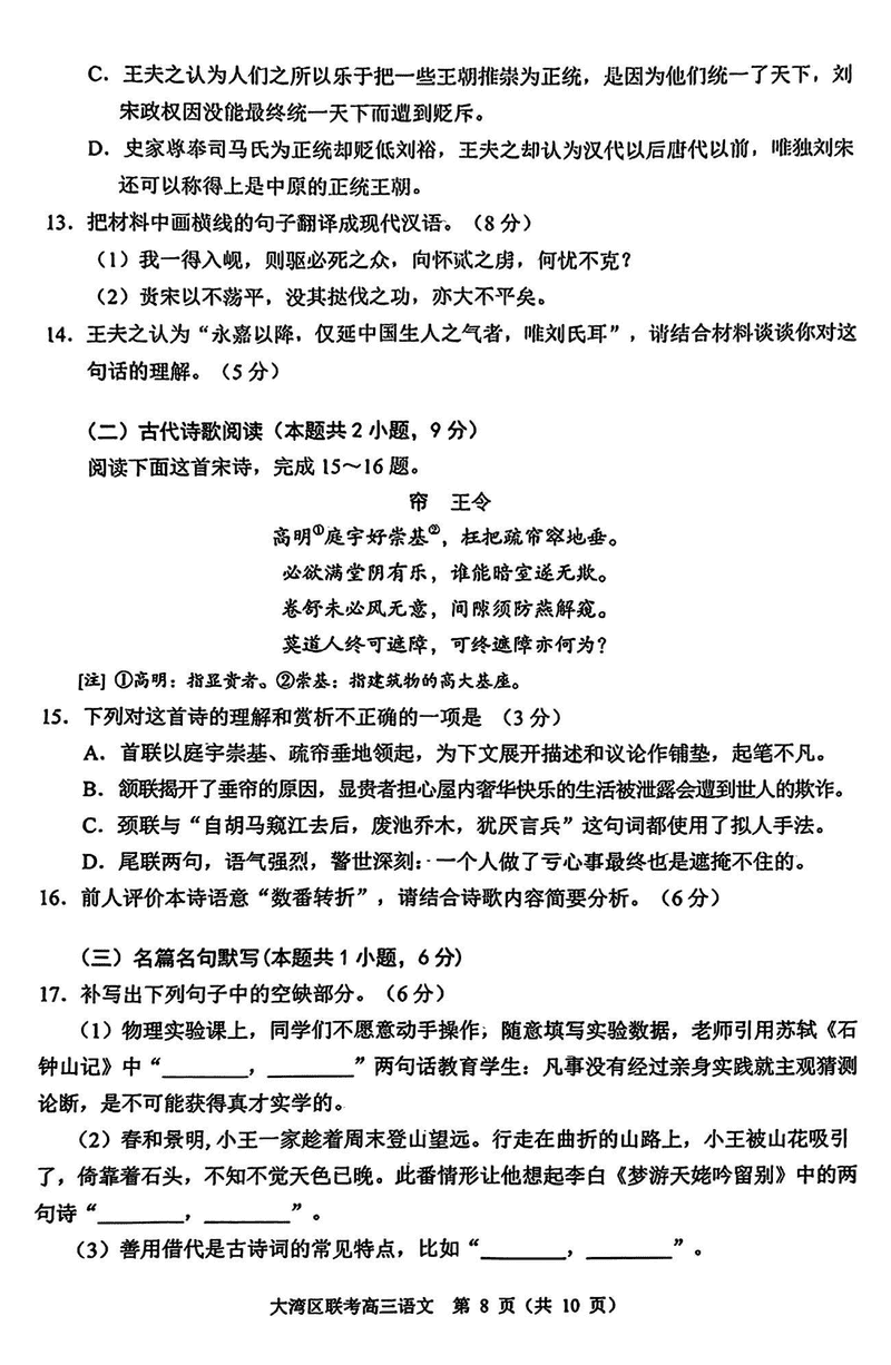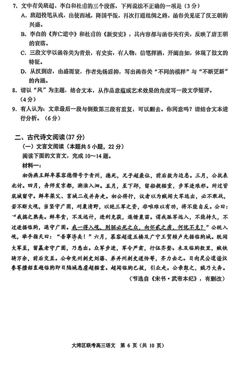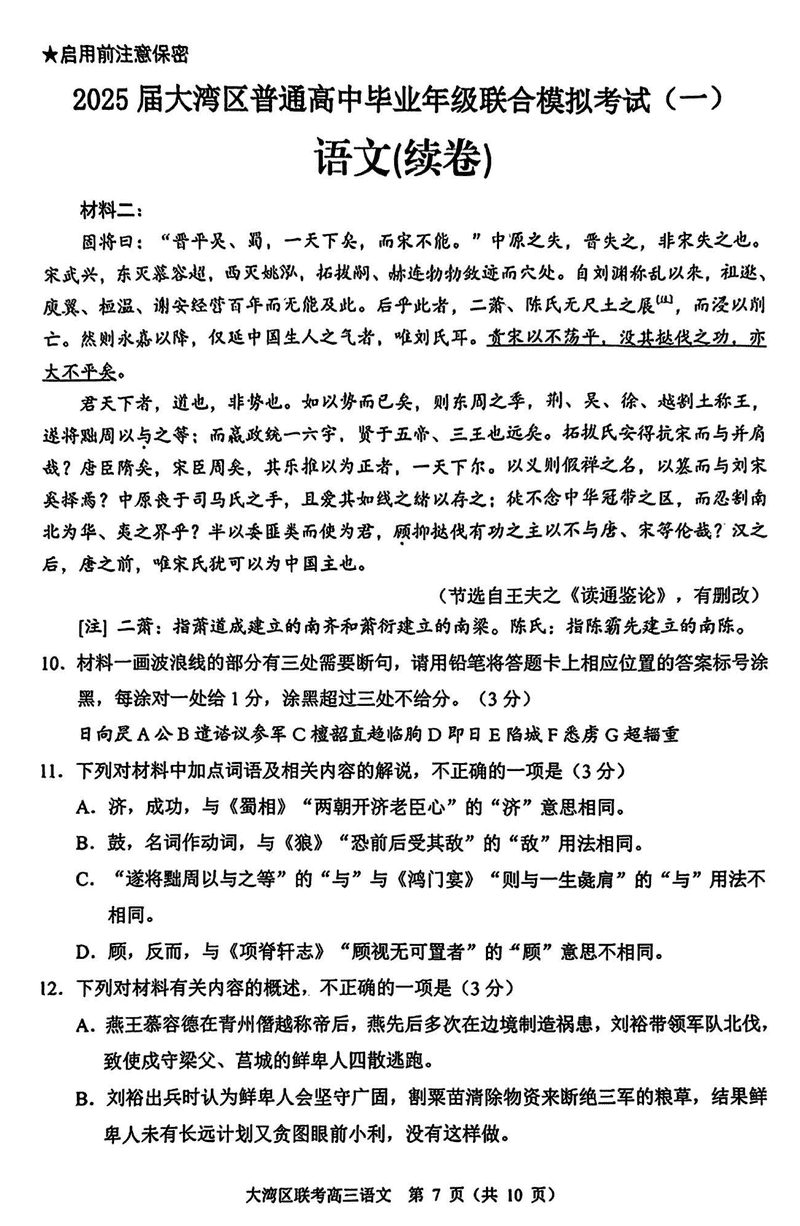 2025届广东省大湾区高三联合模拟考试(一)语文试题及答案