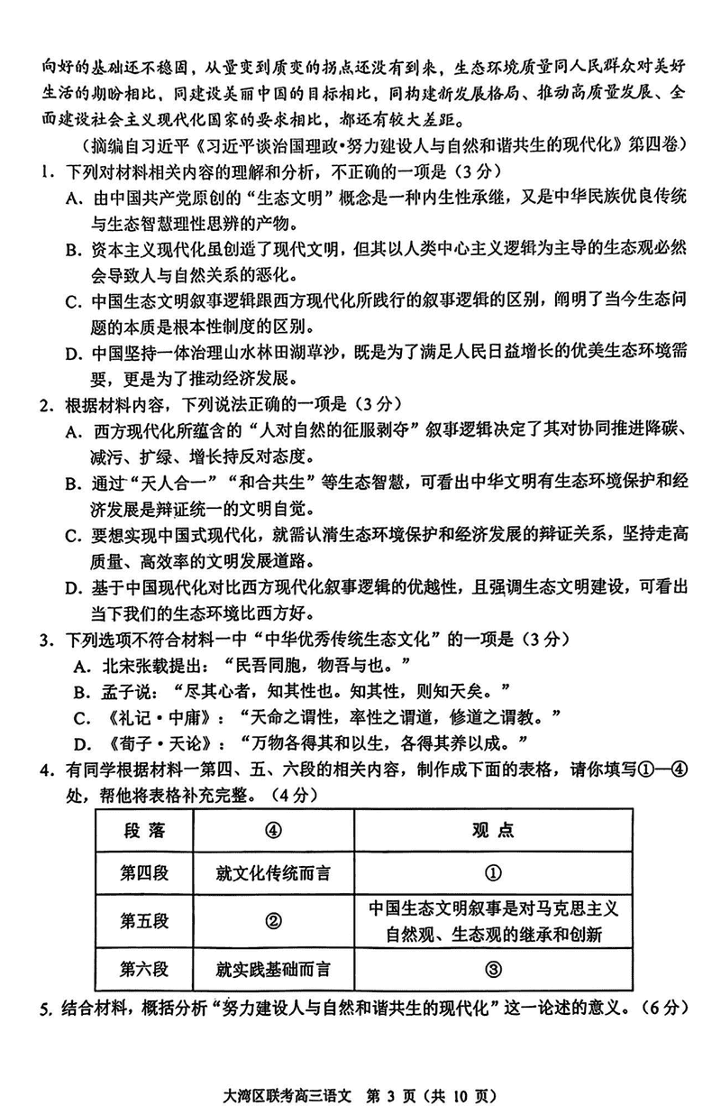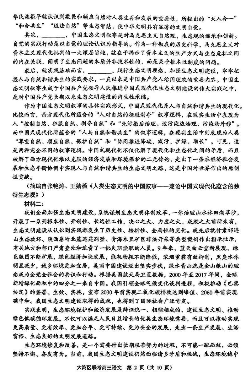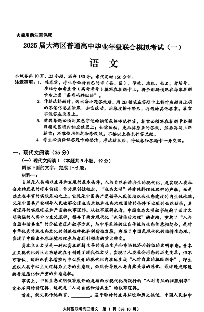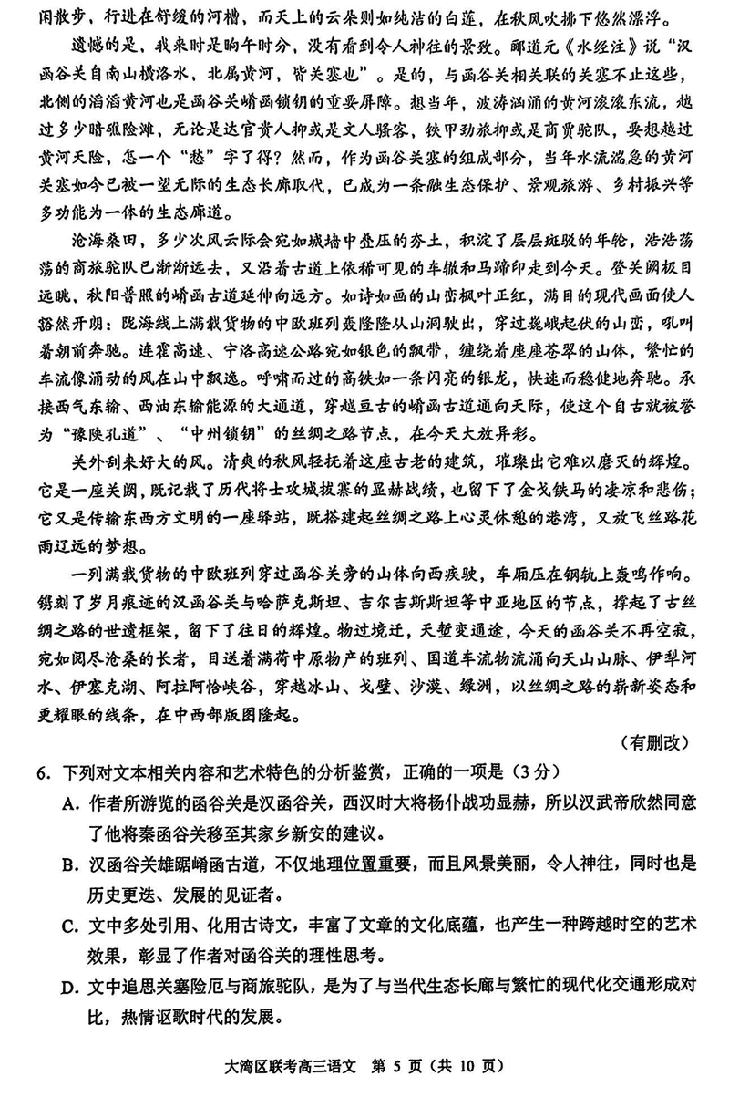 2025届广东省大湾区高三联合模拟考试(一)语文试题及答案