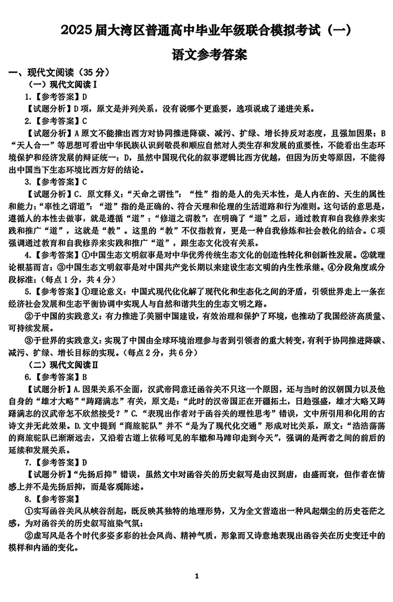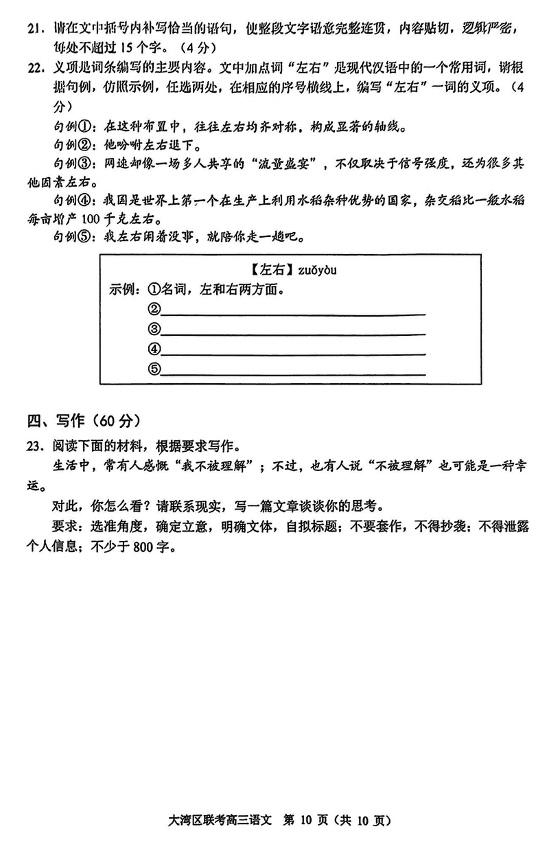 2025届广东省大湾区高三联合模拟考试(一)语文考试已于近日开考,为方便考生考后及时查看考试情况,查漏补缺、弥补不足,本文整理了试题答案解析相关信息!