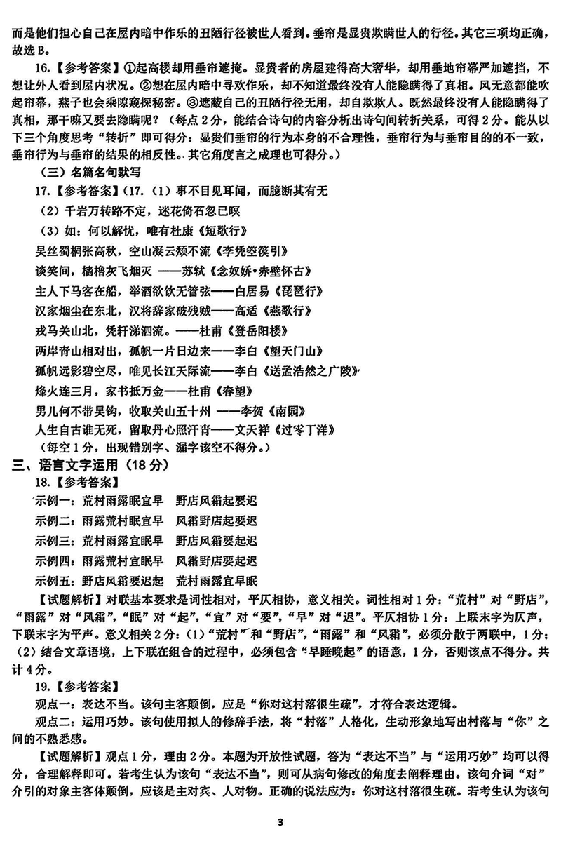 语文试题及答案解析