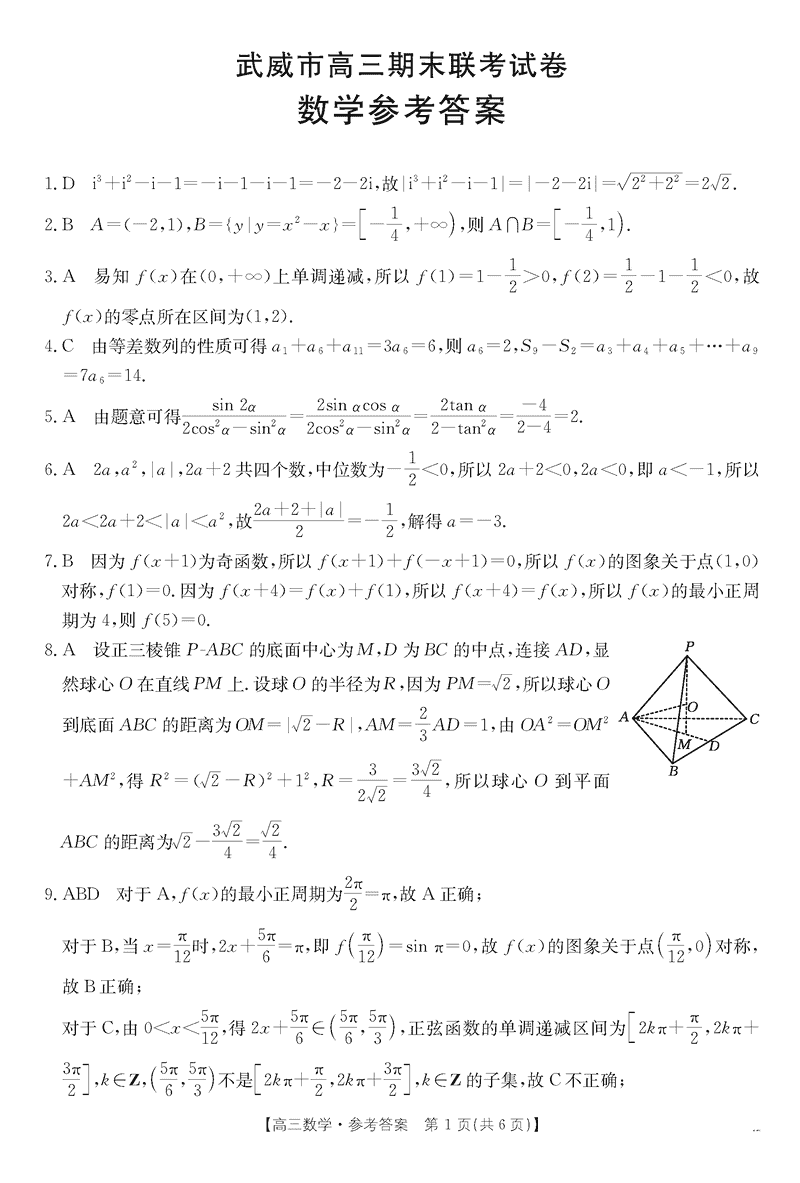 甘肃武威2025届高三上学期1月期末联考数学考试已于近日开考,为方便考生考后及时查看考试情况,查漏补缺、弥补不足,本文整理了试题答案解析相关信息!