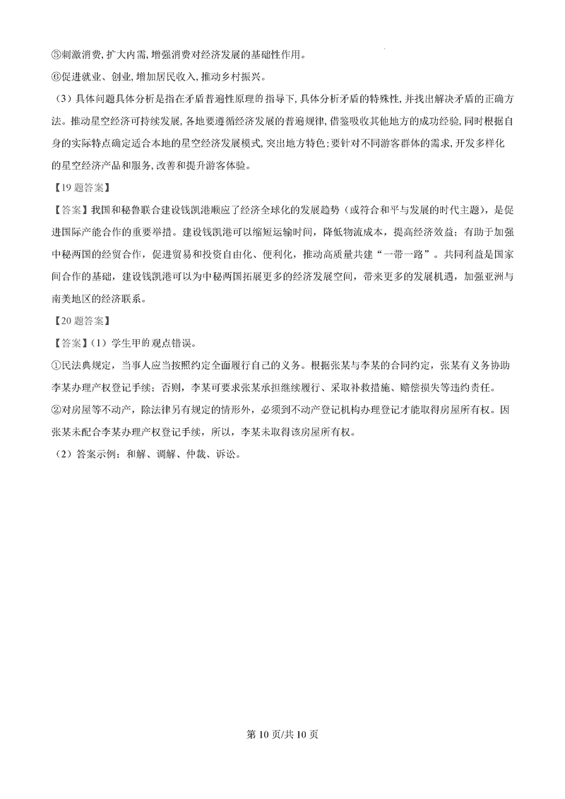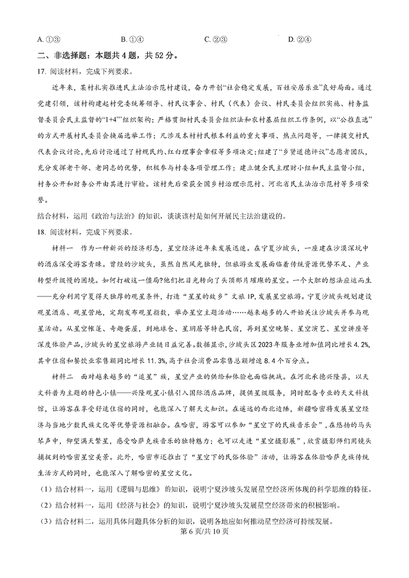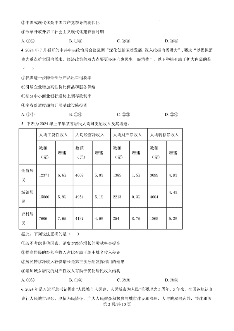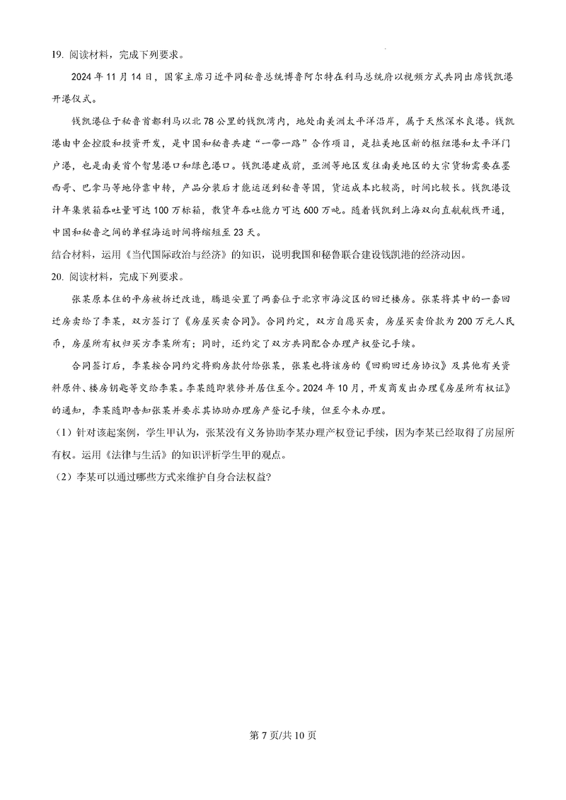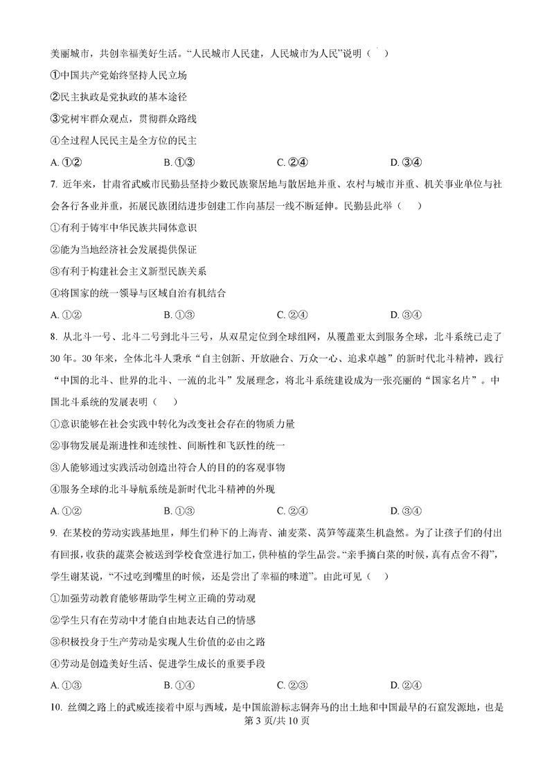 甘肃武威2025届高三上学期1月期末联考政治试题及答案