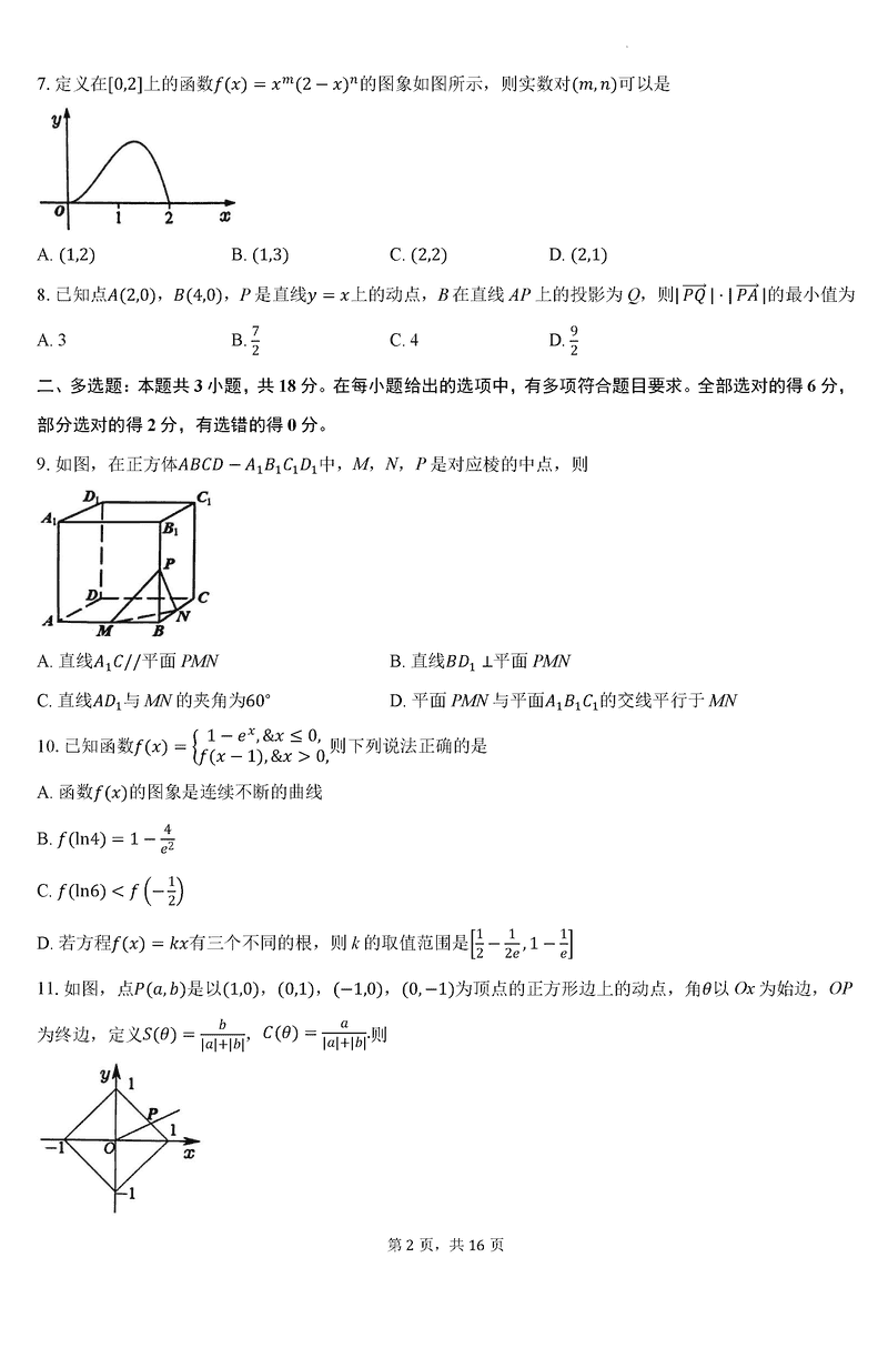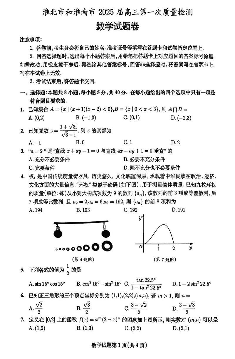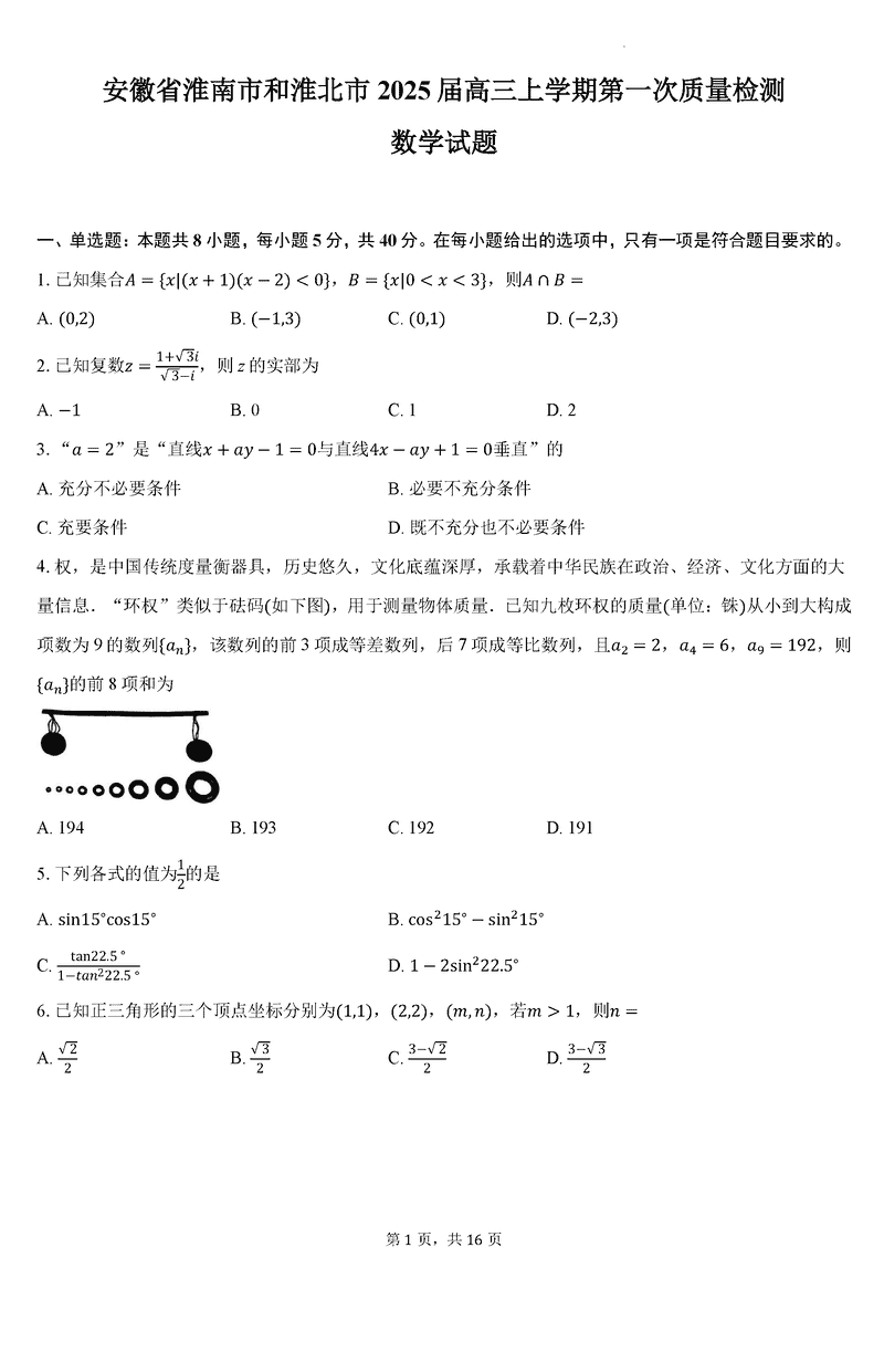 淮南市、淮北市2025届高三上学期第一次质检数学试题及答案