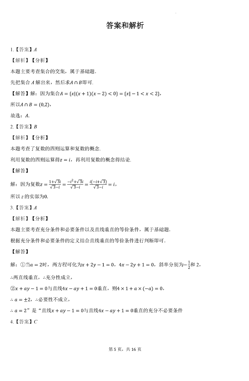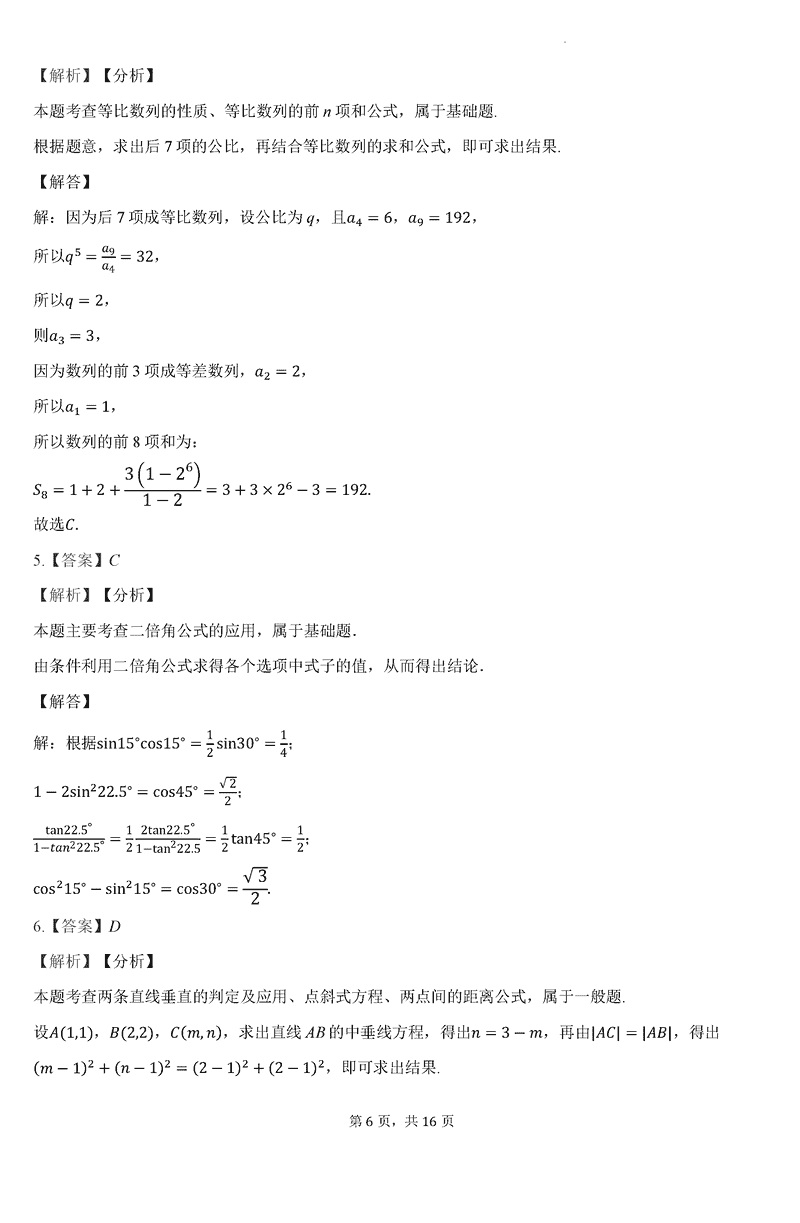 数学试题及答案解析