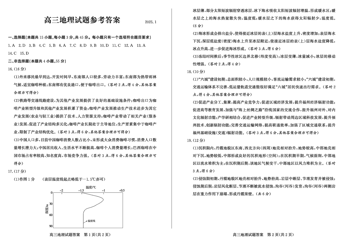 山东滨州2025年高三上学期1月期末地理考试已于近日开考,为方便考生考后及时查看考试情况,查漏补缺、弥补不足,本文整理了试题答案解析相关信息!