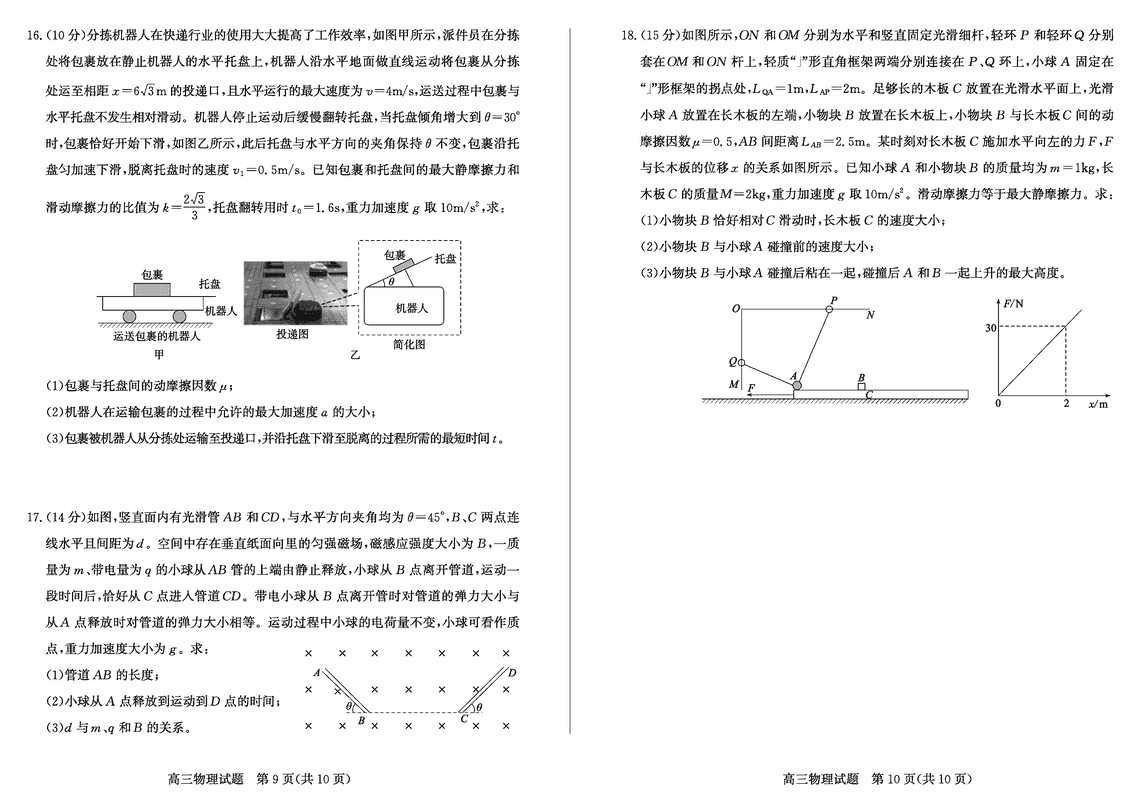山东滨州2025年高三上学期1月期末物理试题及答案