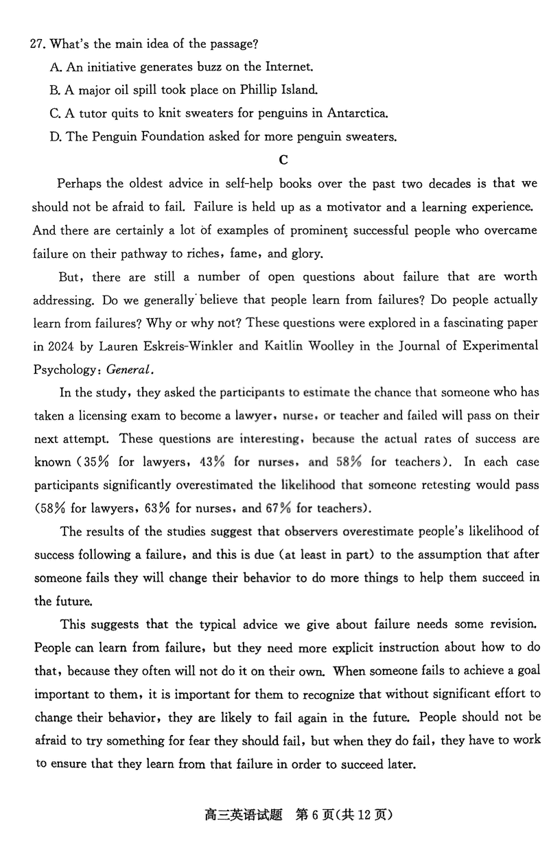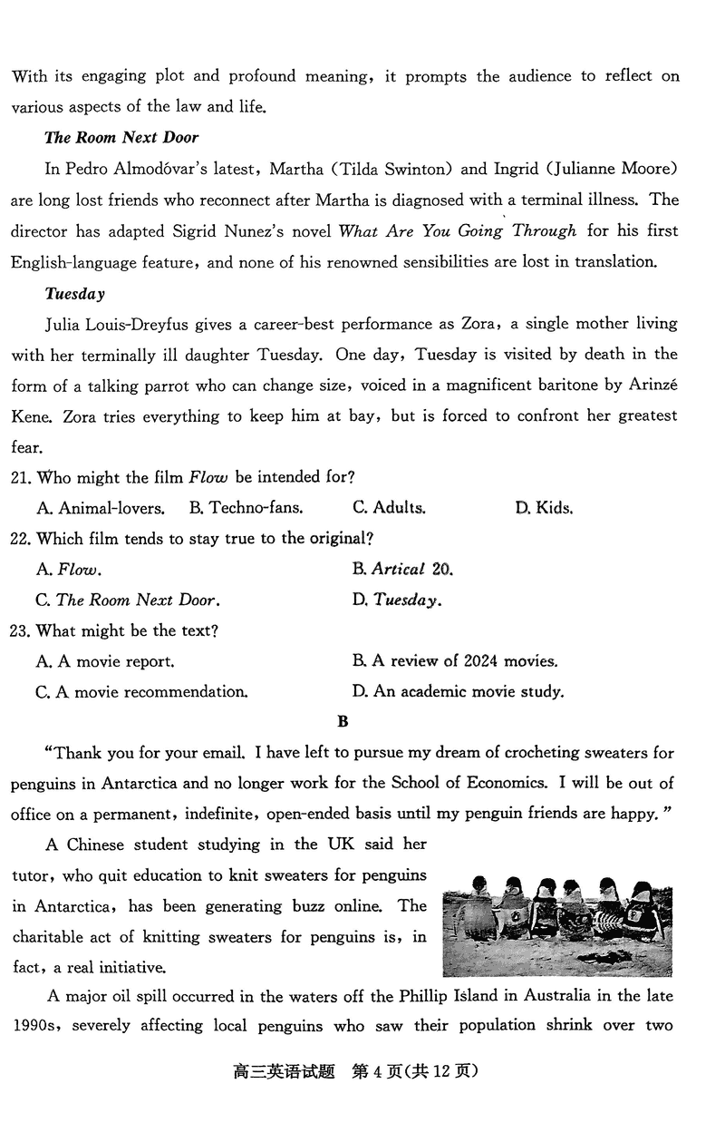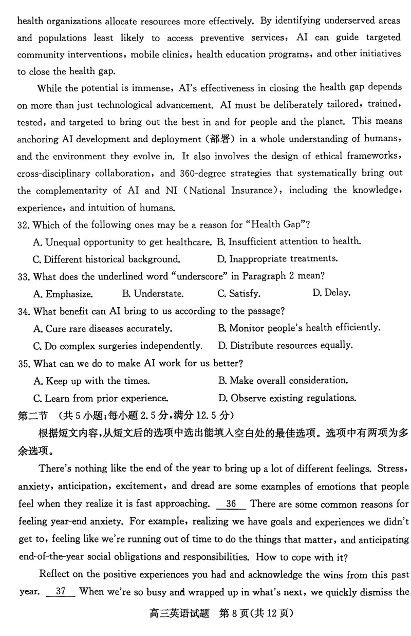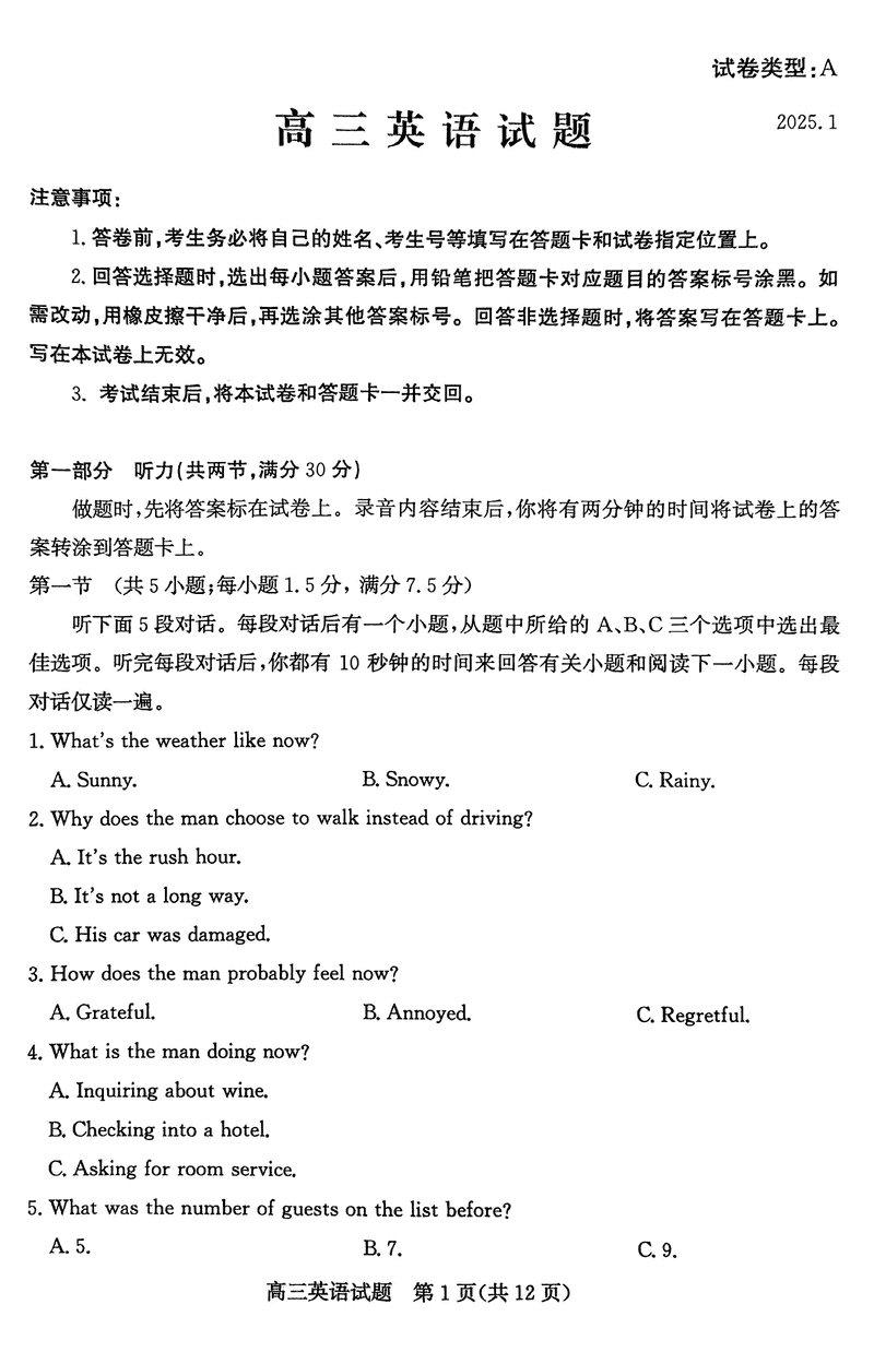 山东滨州2025年高三上学期1月期末英语试题及答案