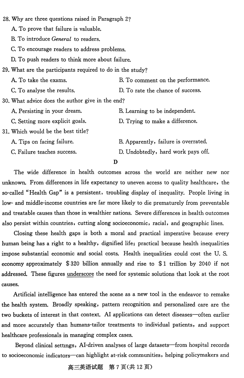 山东滨州2025年高三上学期1月期末英语考试已于近日开考,为方便考生考后及时查看考试情况,查漏补缺、弥补不足,本文整理了试题答案解析相关信息!