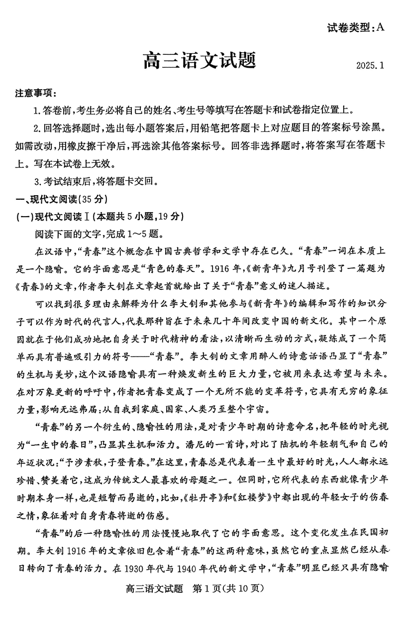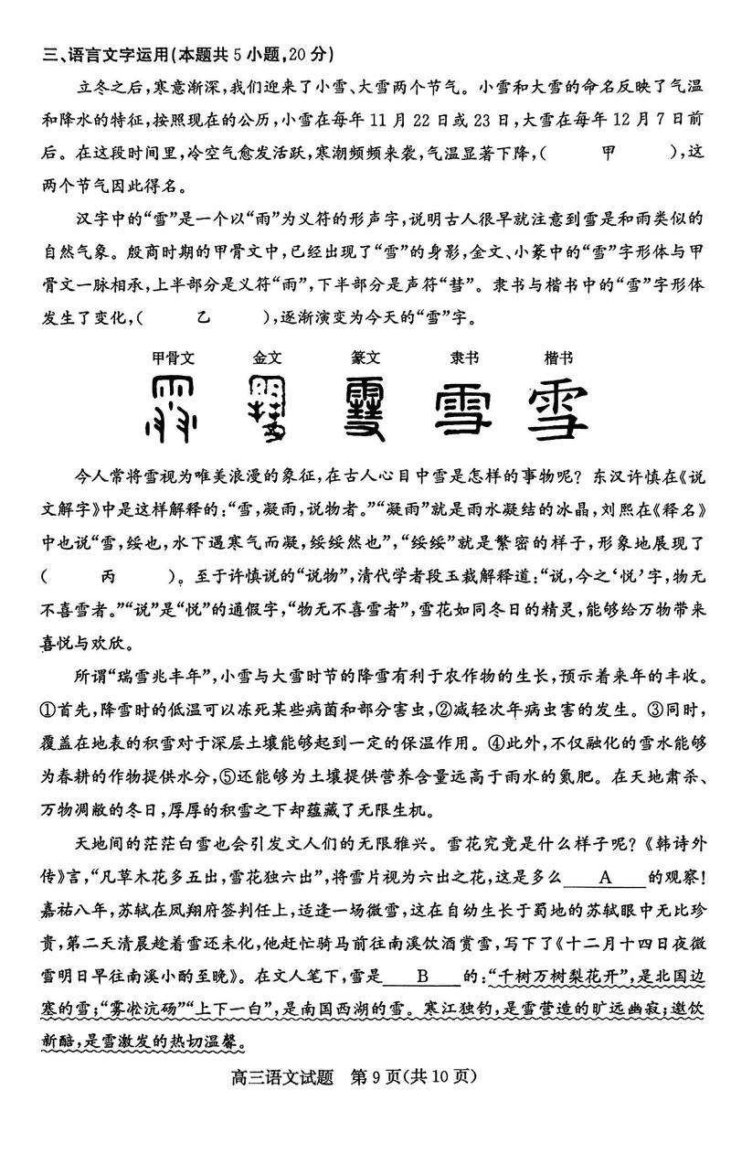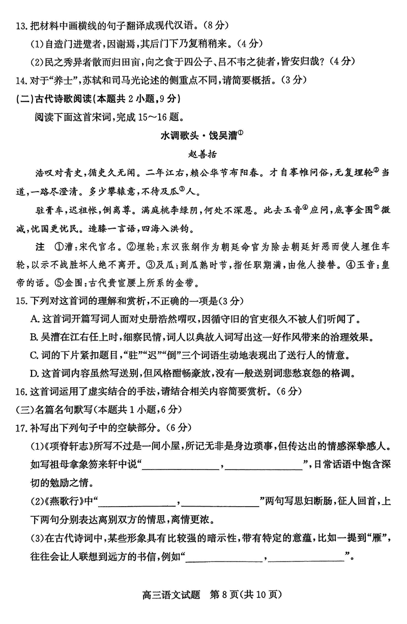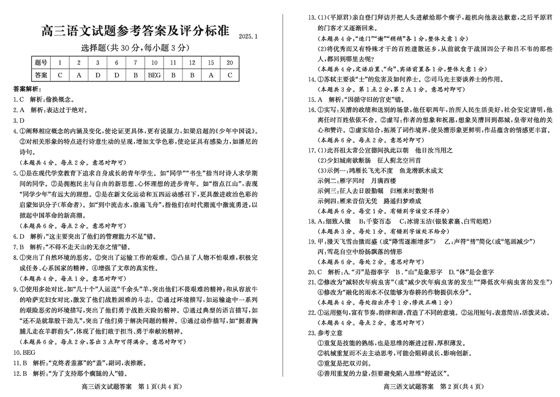山东滨州2025年高三上学期1月期末语文考试已于近日开考,为方便考生考后及时查看考试情况,查漏补缺、弥补不足,本文整理了试题答案解析相关信息!