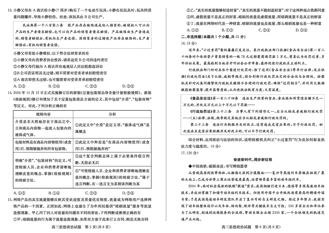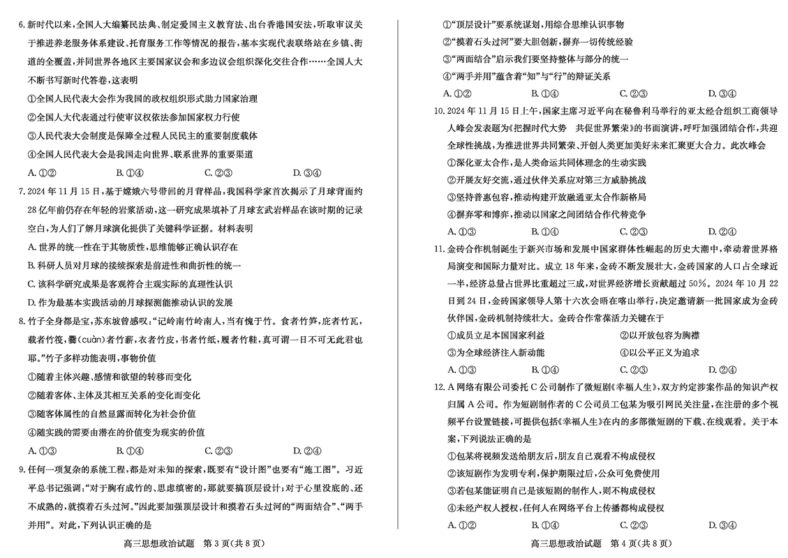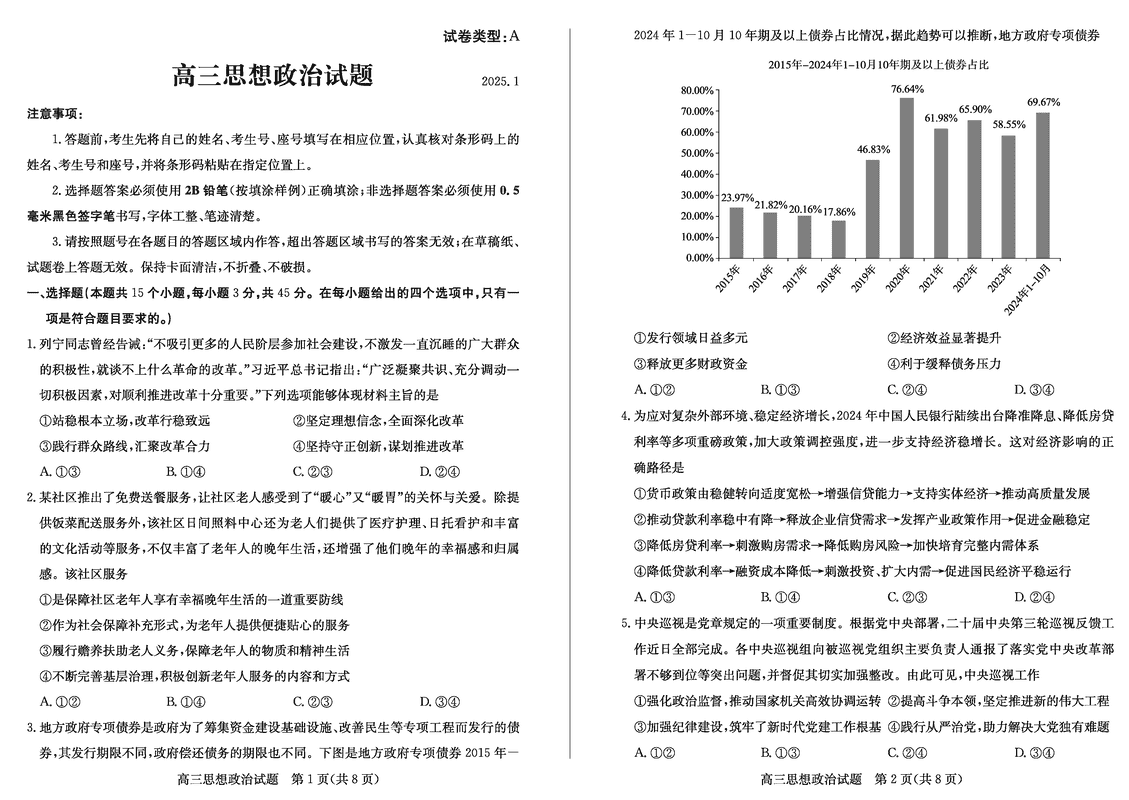 山东滨州2025年高三上学期1月期末政治试题及答案