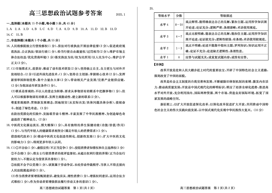 山东滨州2025年高三上学期1月期末政治考试已于近日开考,为方便考生考后及时查看考试情况,查漏补缺、弥补不足,本文整理了试题答案解析相关信息!
