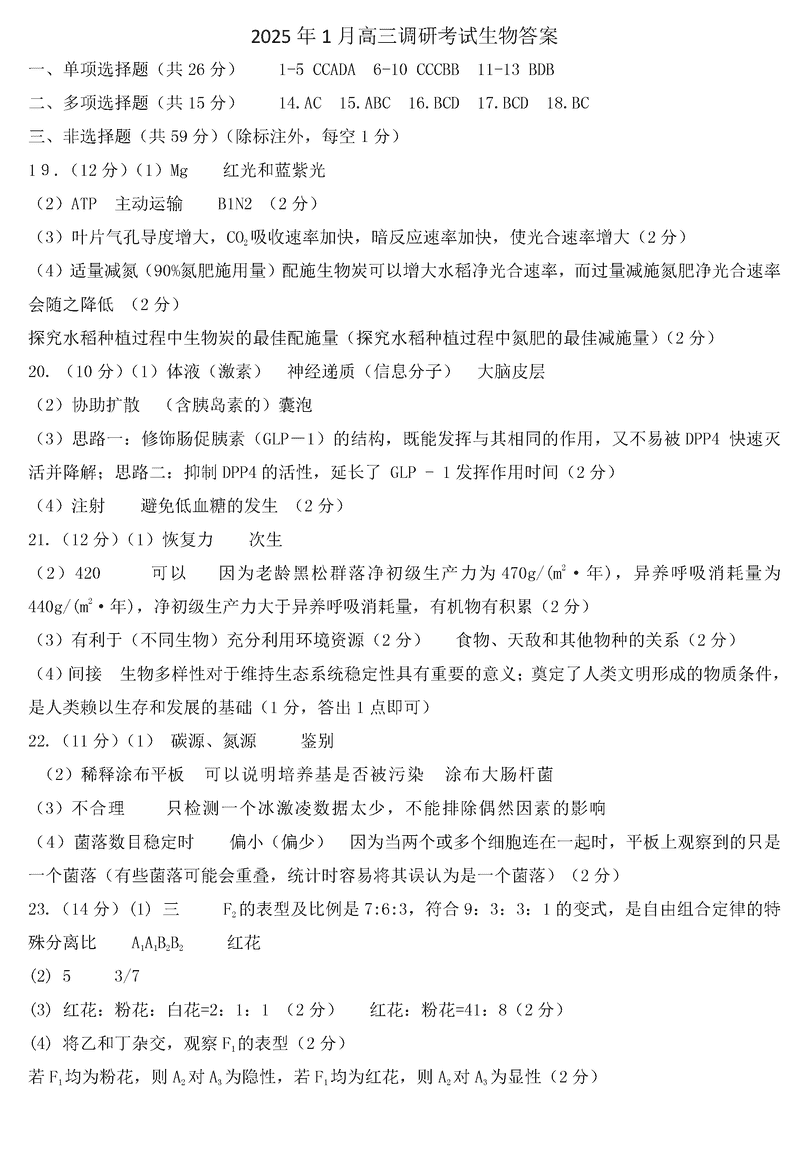 河北保定2024-2025学年高三上学期1月期末调研生物考试已于近日开考,为方便考生考后及时查看考试情况,查漏补缺、弥补不足,本文整理了试题答案解析相关信息!