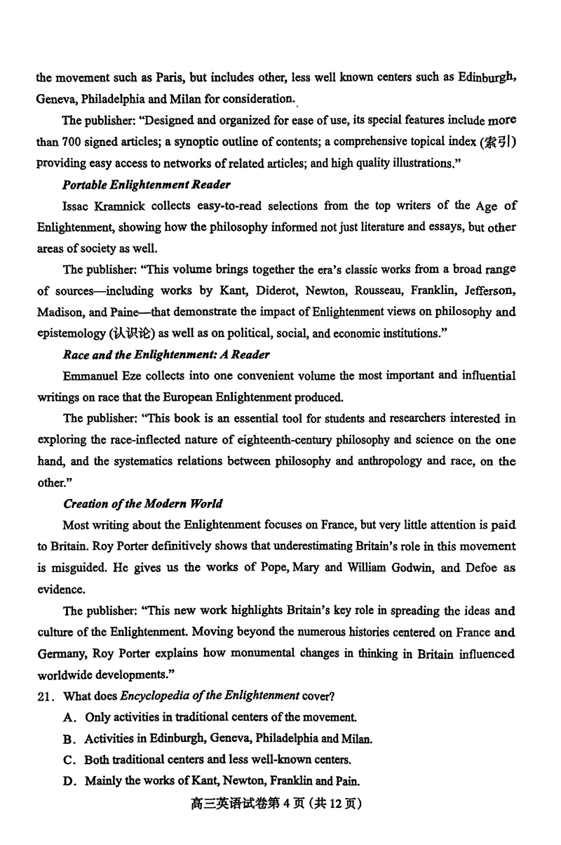 河北保定2024-2025学年高三上学期1月期末调研英语考试已于近日开考,为方便考生考后及时查看考试情况,查漏补缺、弥补不足,本文整理了试题答案解析相关信息!