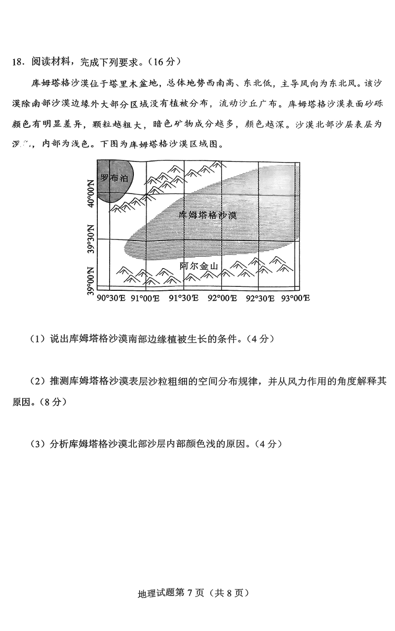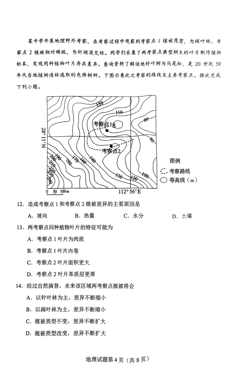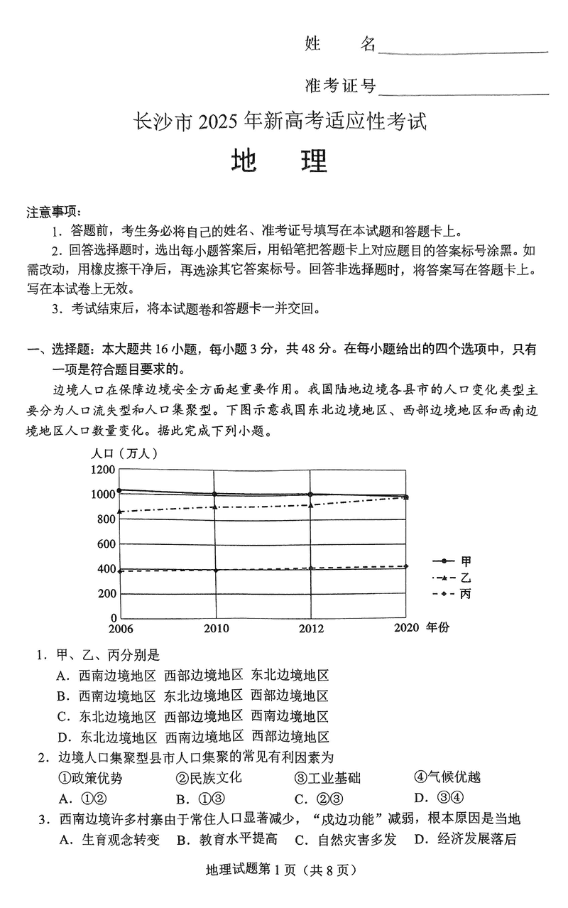 长沙市2024-2025学年高三上学期新高考适应性考试地理试题及答案