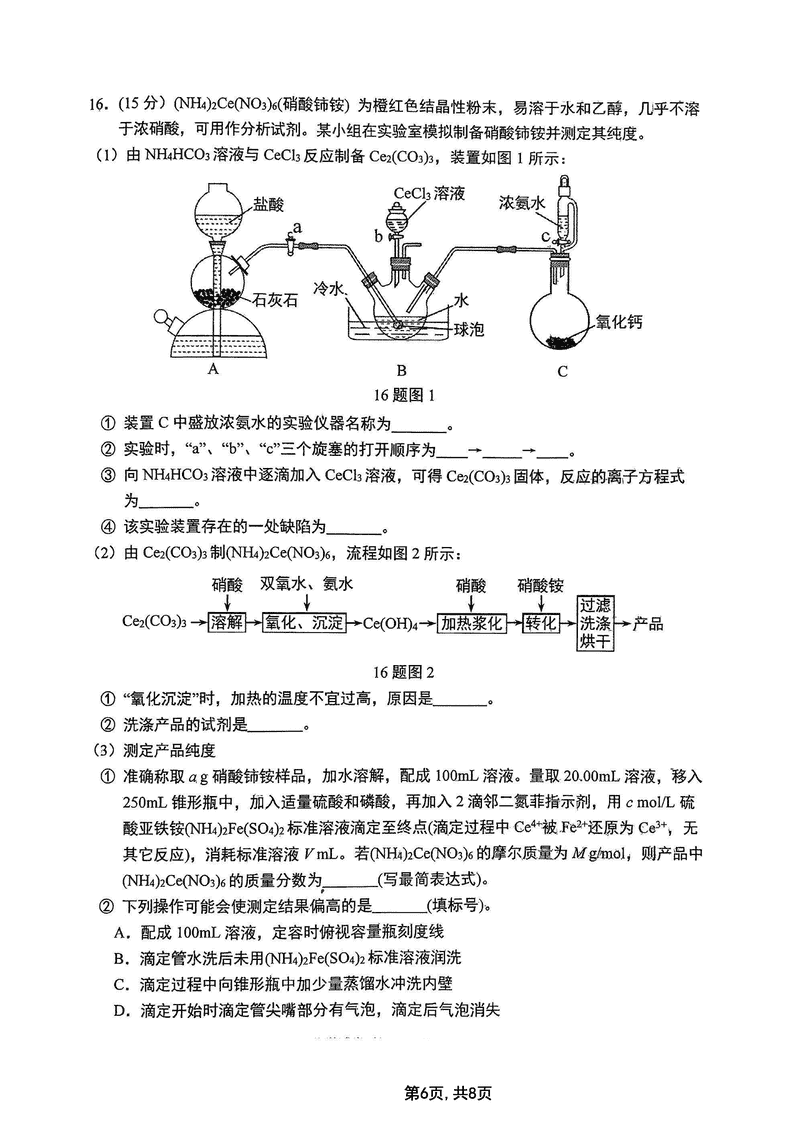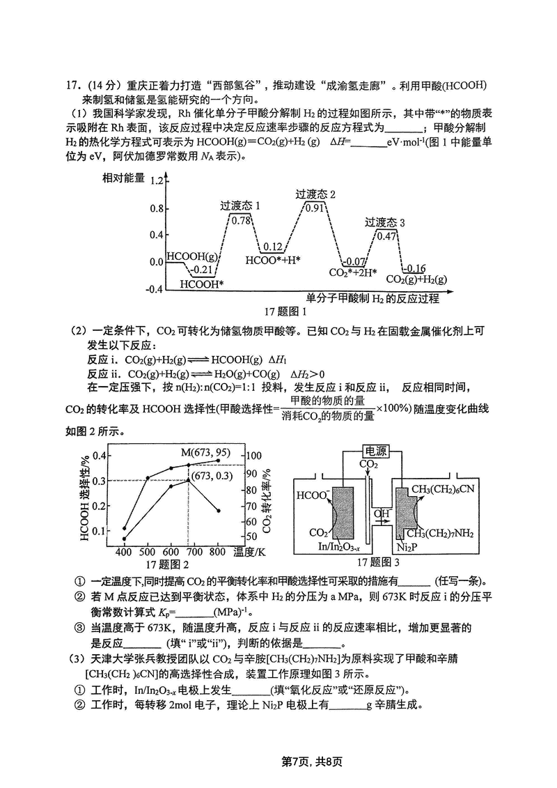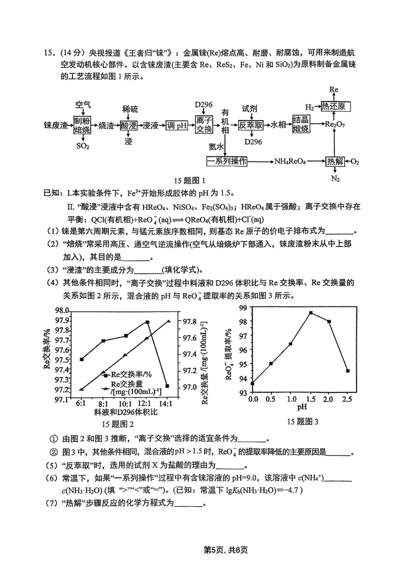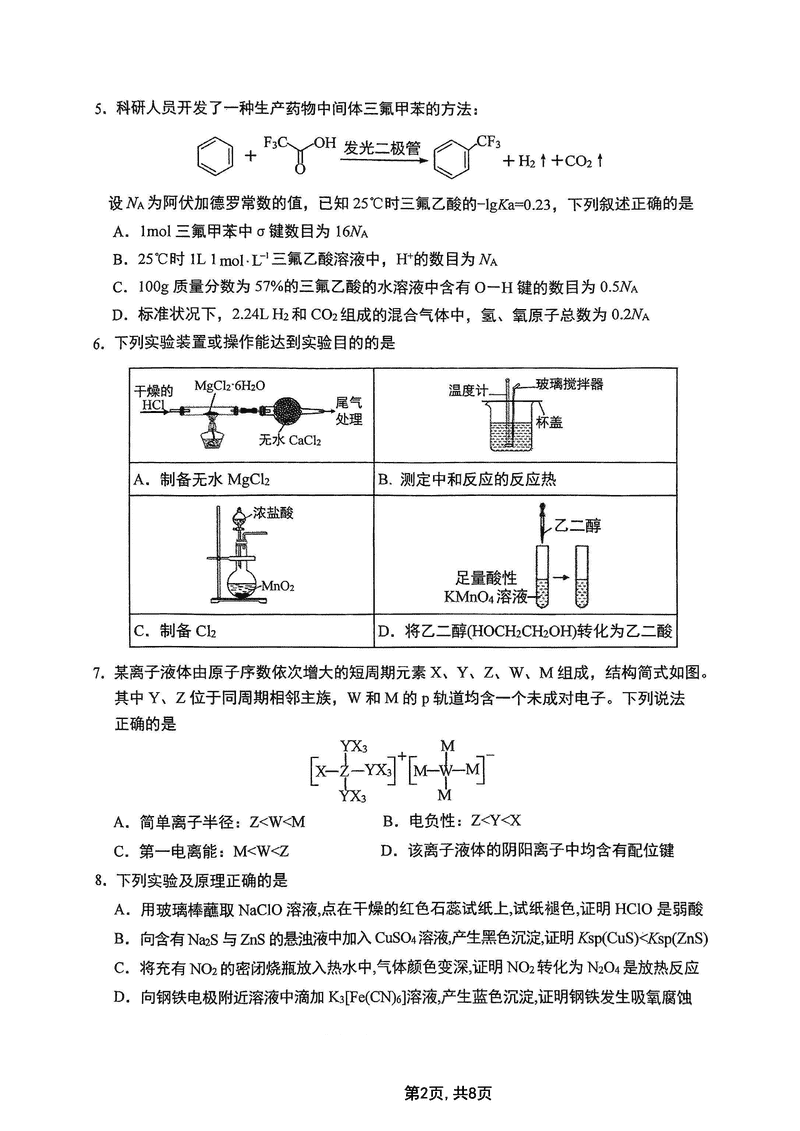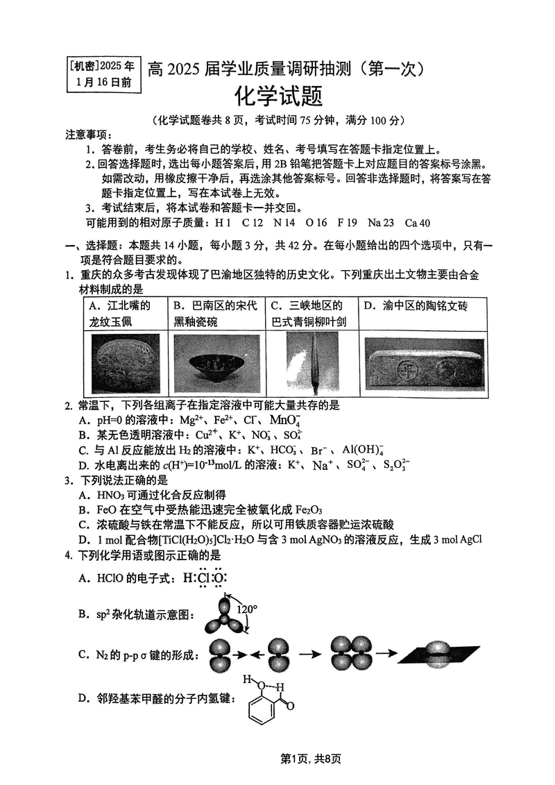 重庆主城五区一诊暨九龙坡高2025届学业质量调研化学试题及答案