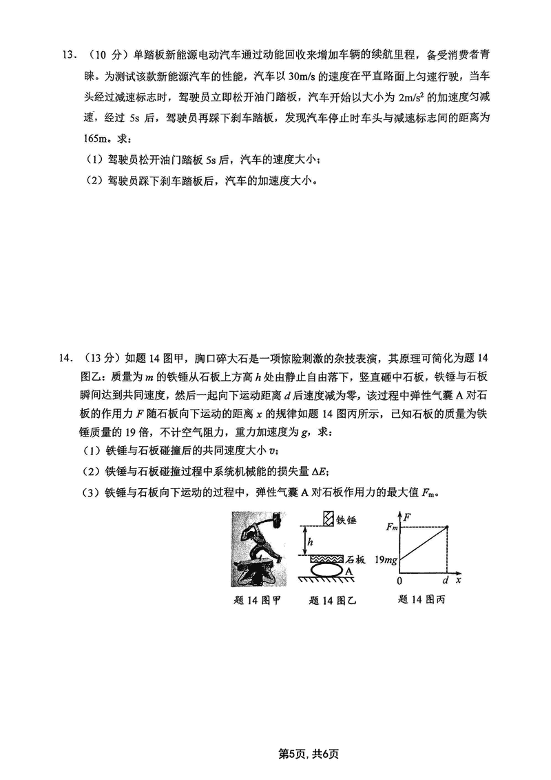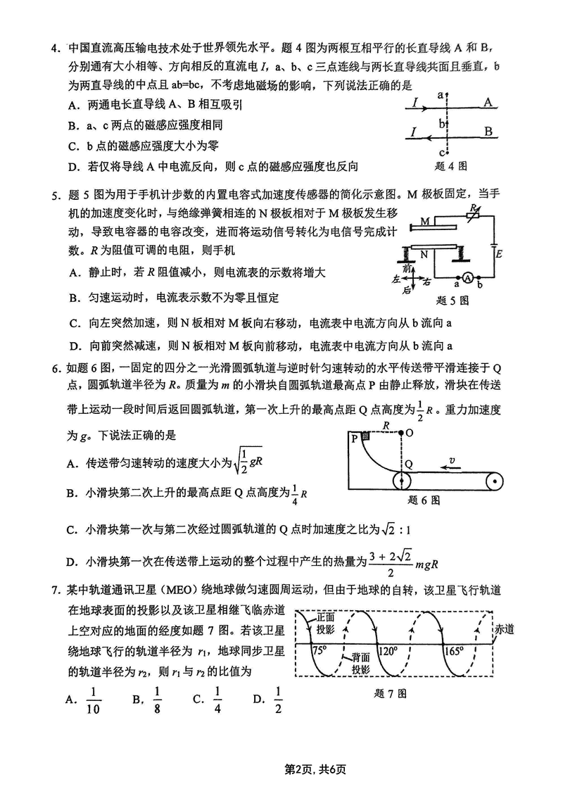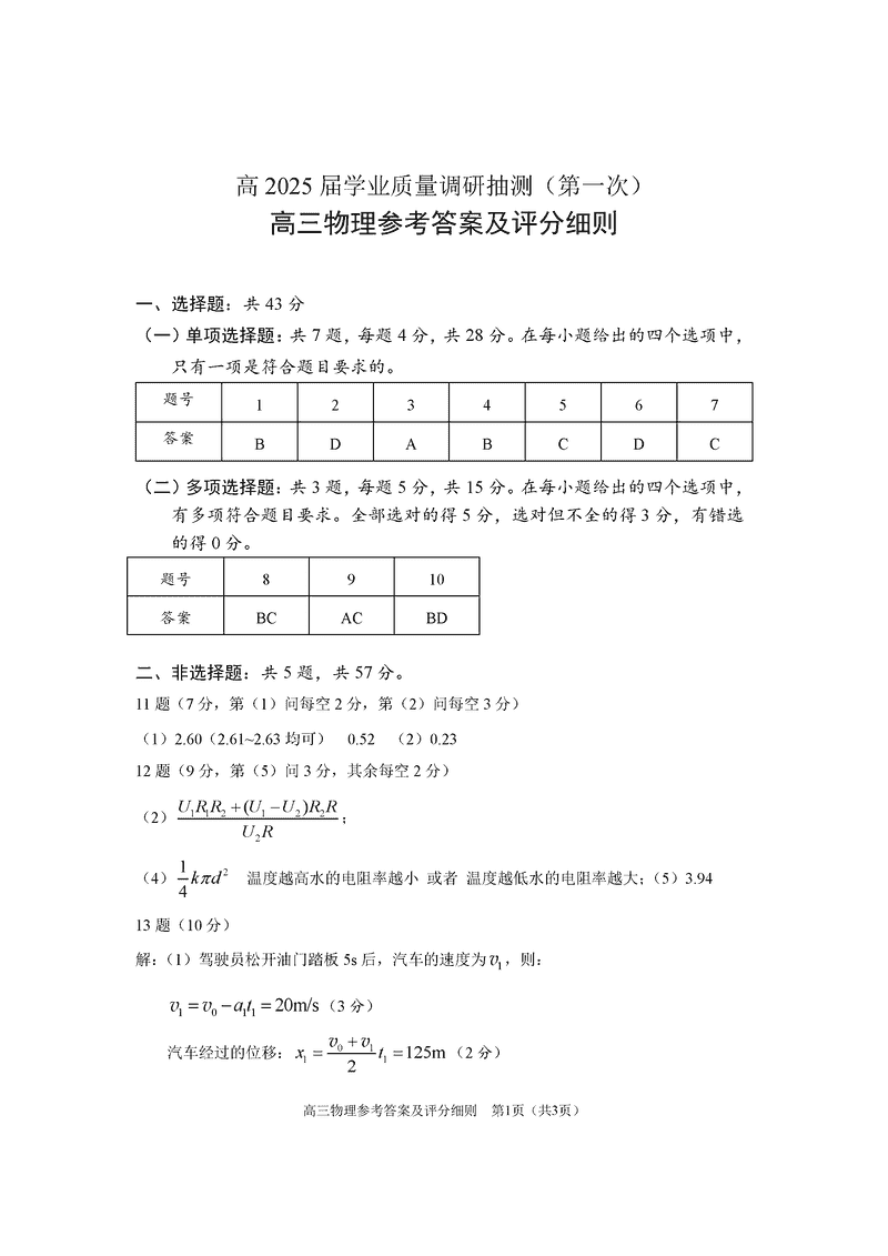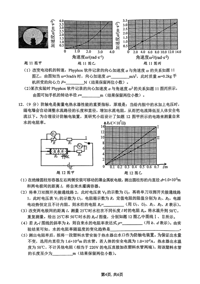 重庆主城五区一诊暨九龙坡高2025届学业质量调研物理试题及答案