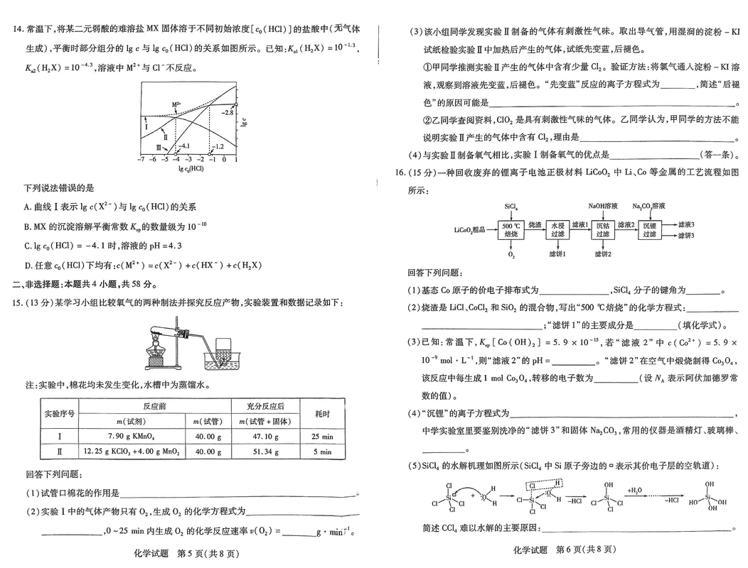 皖豫天一大联考2025届高三1月期末检测化学试题及答案