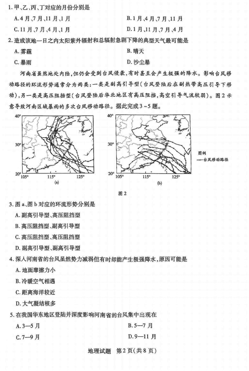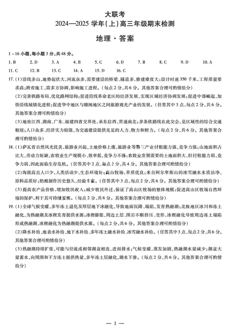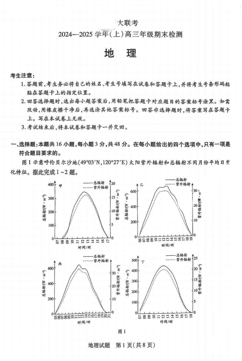 皖豫天一大联考2025届高三1月期末检测地理试题及答案