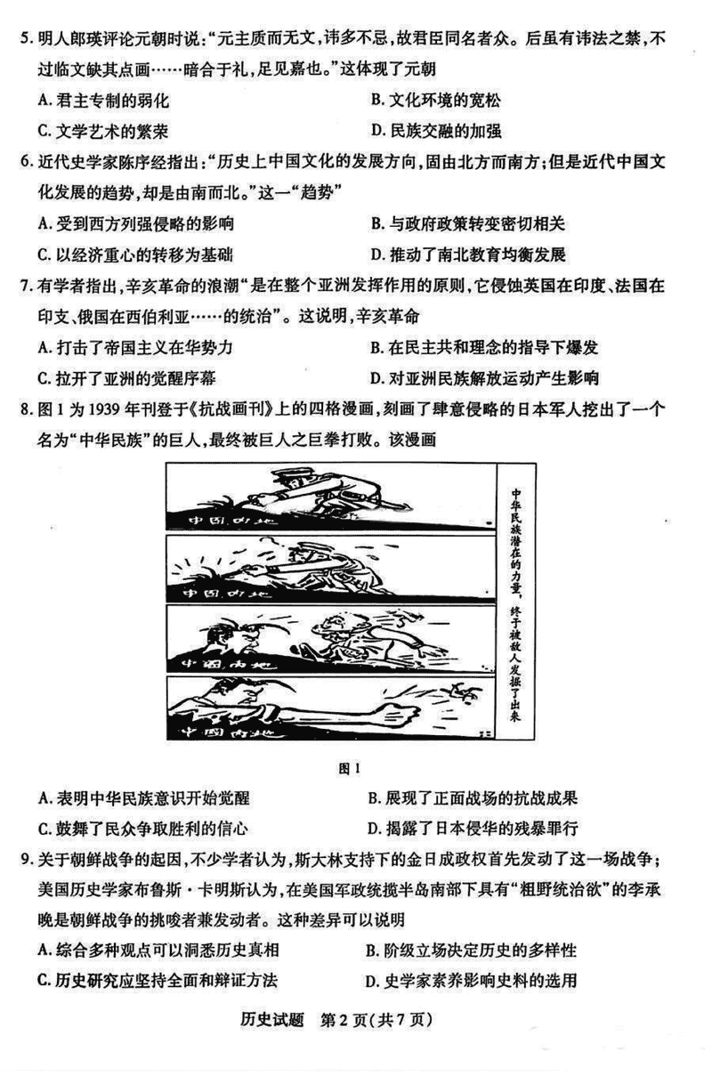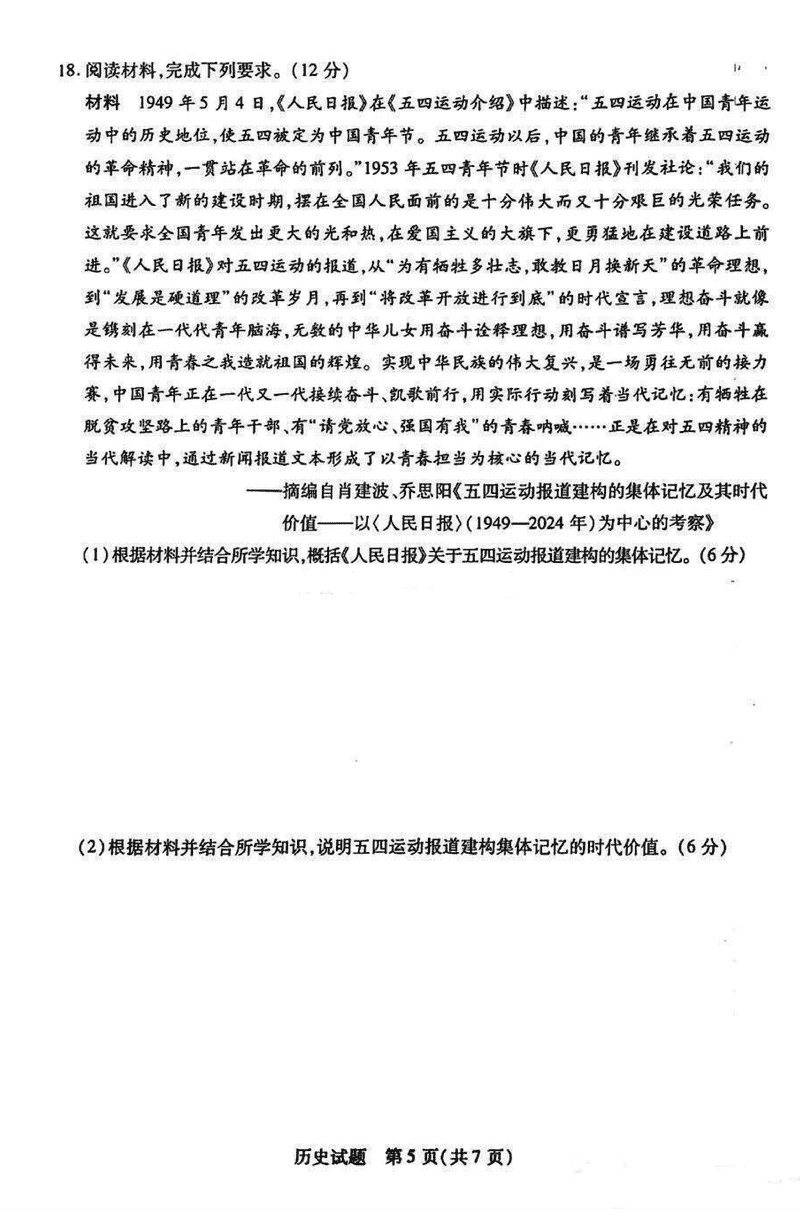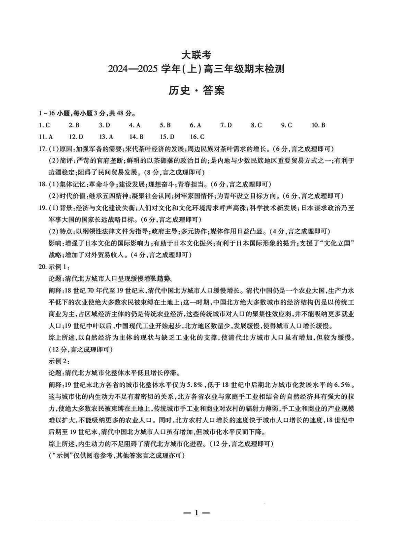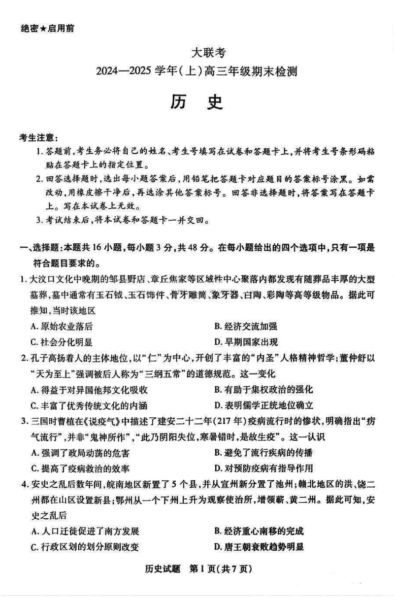 皖豫天一大联考2025届高三1月期末检测历史试题及答案