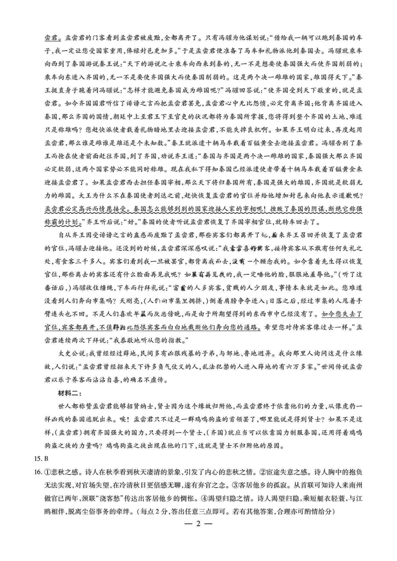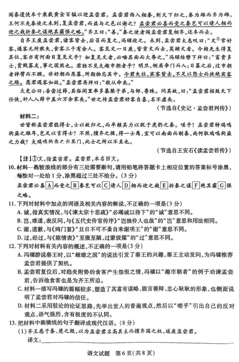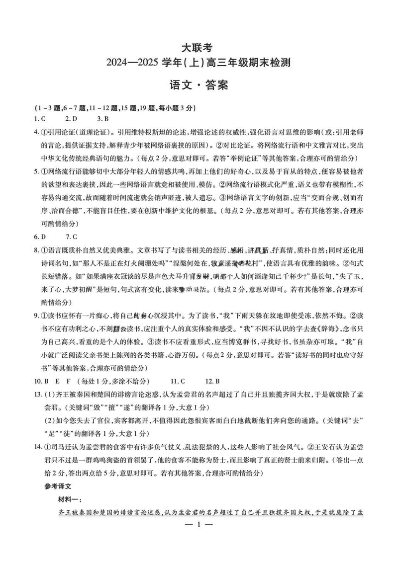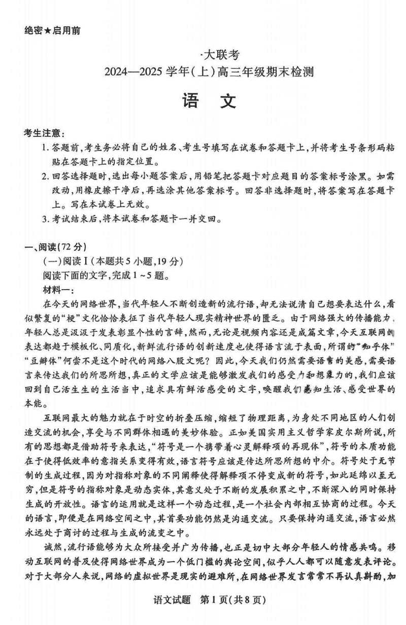 皖豫天一大联考2025届高三1月期末检测语文试题及答案