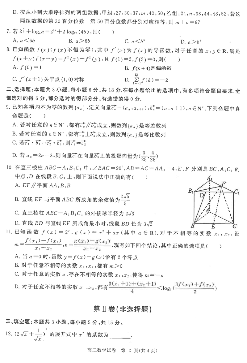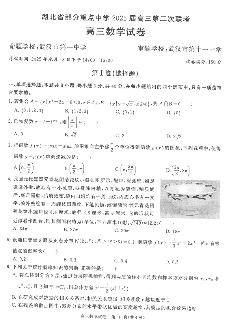湖北省部分重点中学2025届高三第二次联考数学试题及答案