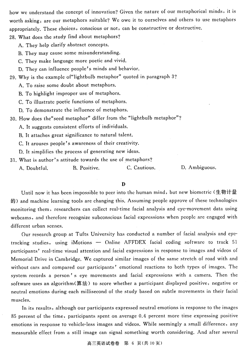 安徽 英语试题