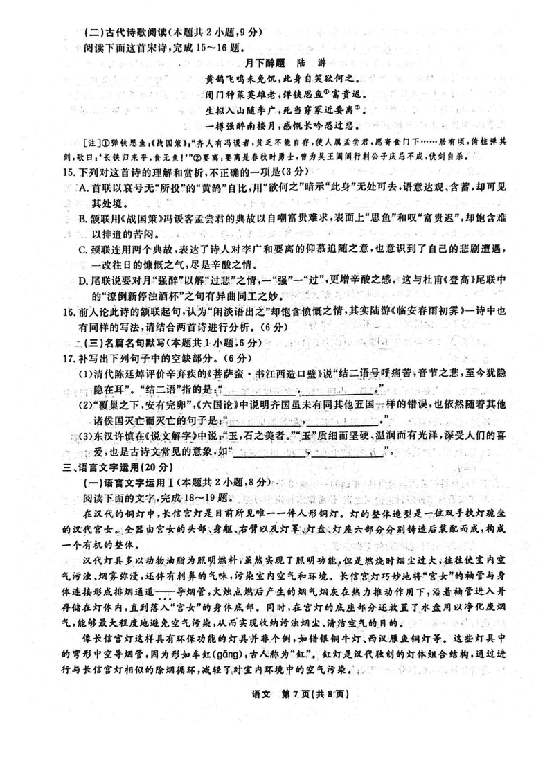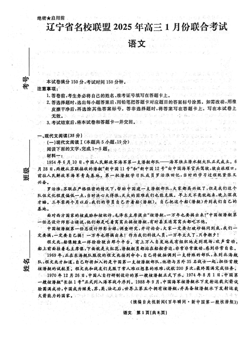 辽宁 语文试题