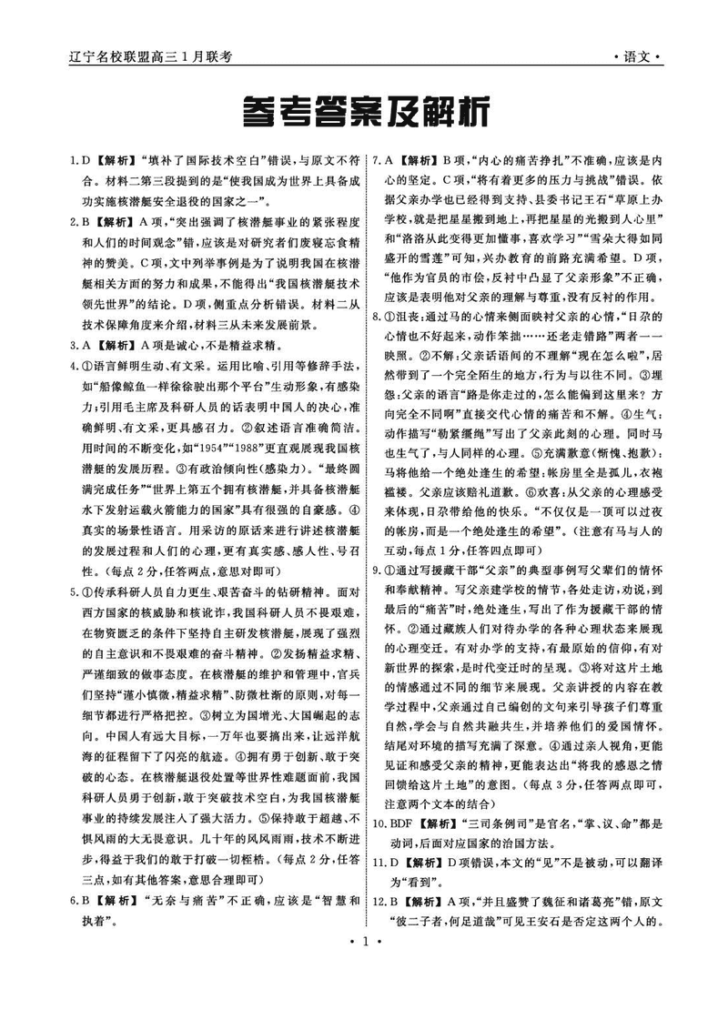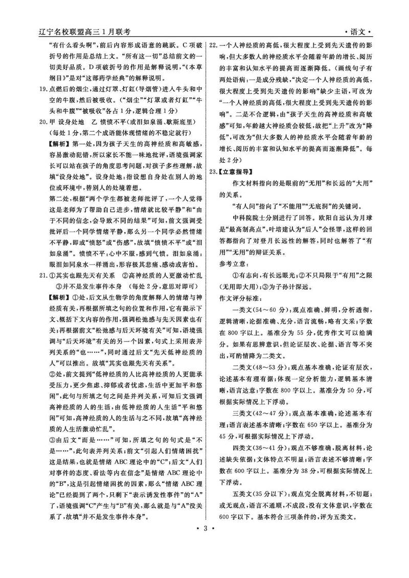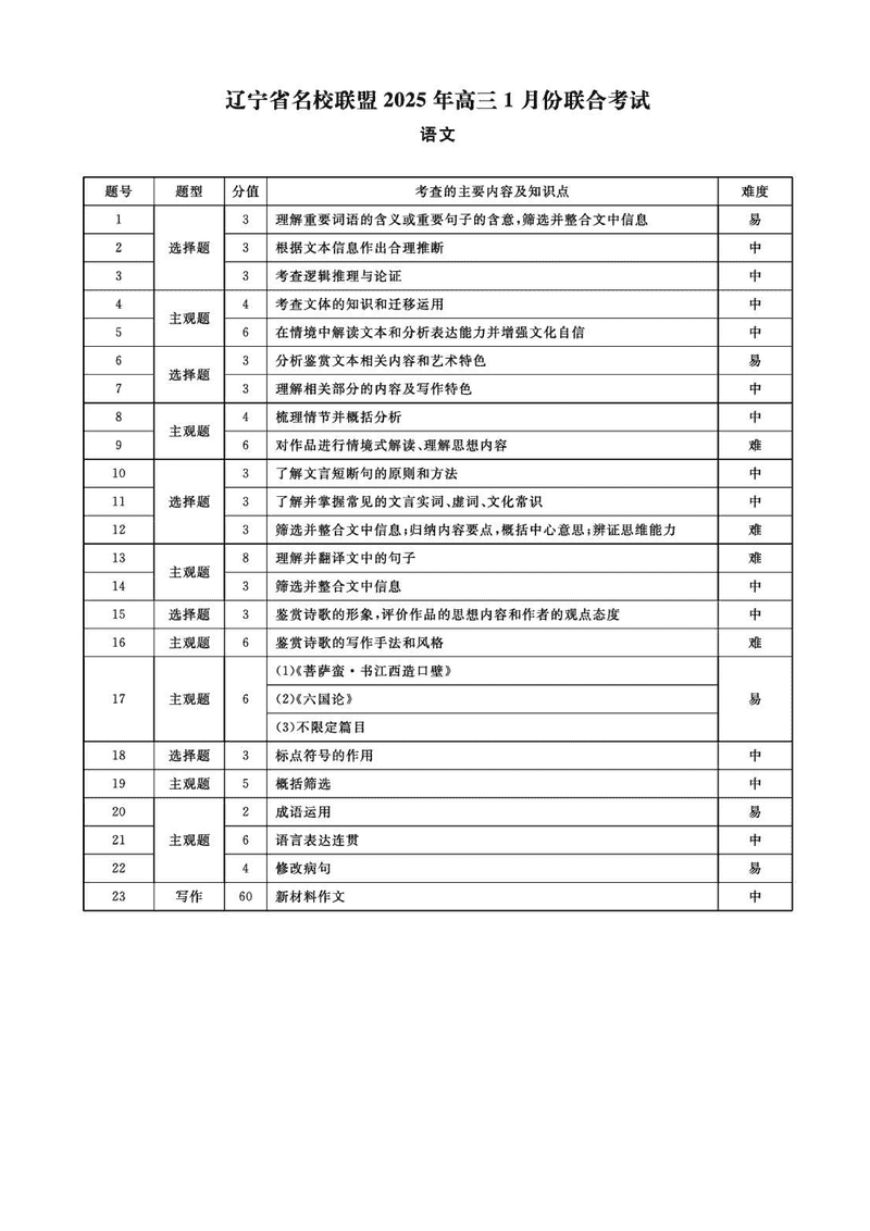 辽宁名校联盟2025年高三上学期1月联考语文考试已于近日开考,为方便考生考后及时查看考试情况,查漏补缺、弥补不足,本文整理了试题答案解析相关信息!